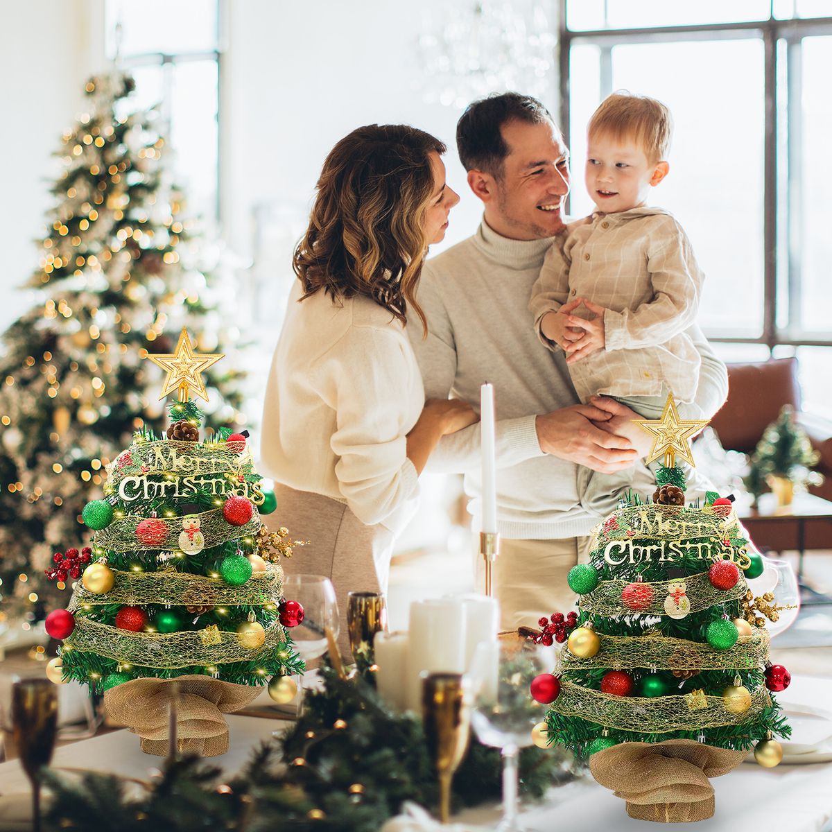 1 x Tabletop Christmas Tree,Type 2 Packing List:,1 x Tabletop Christmas Tree,1 x LED String Lights( Supply: 3xAA Batteries(Not Included)),