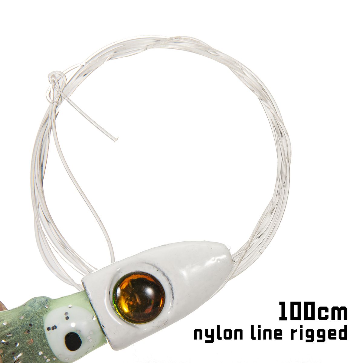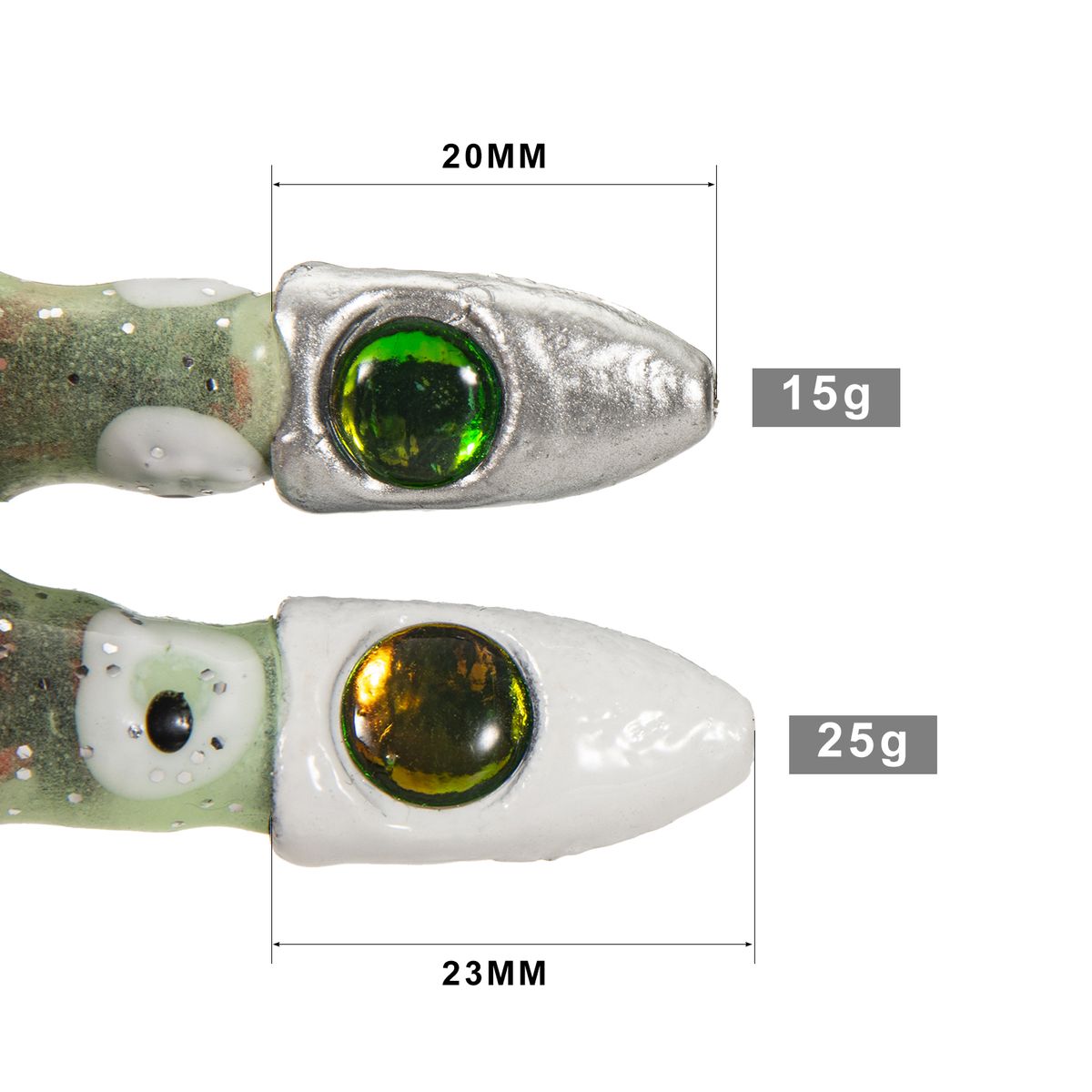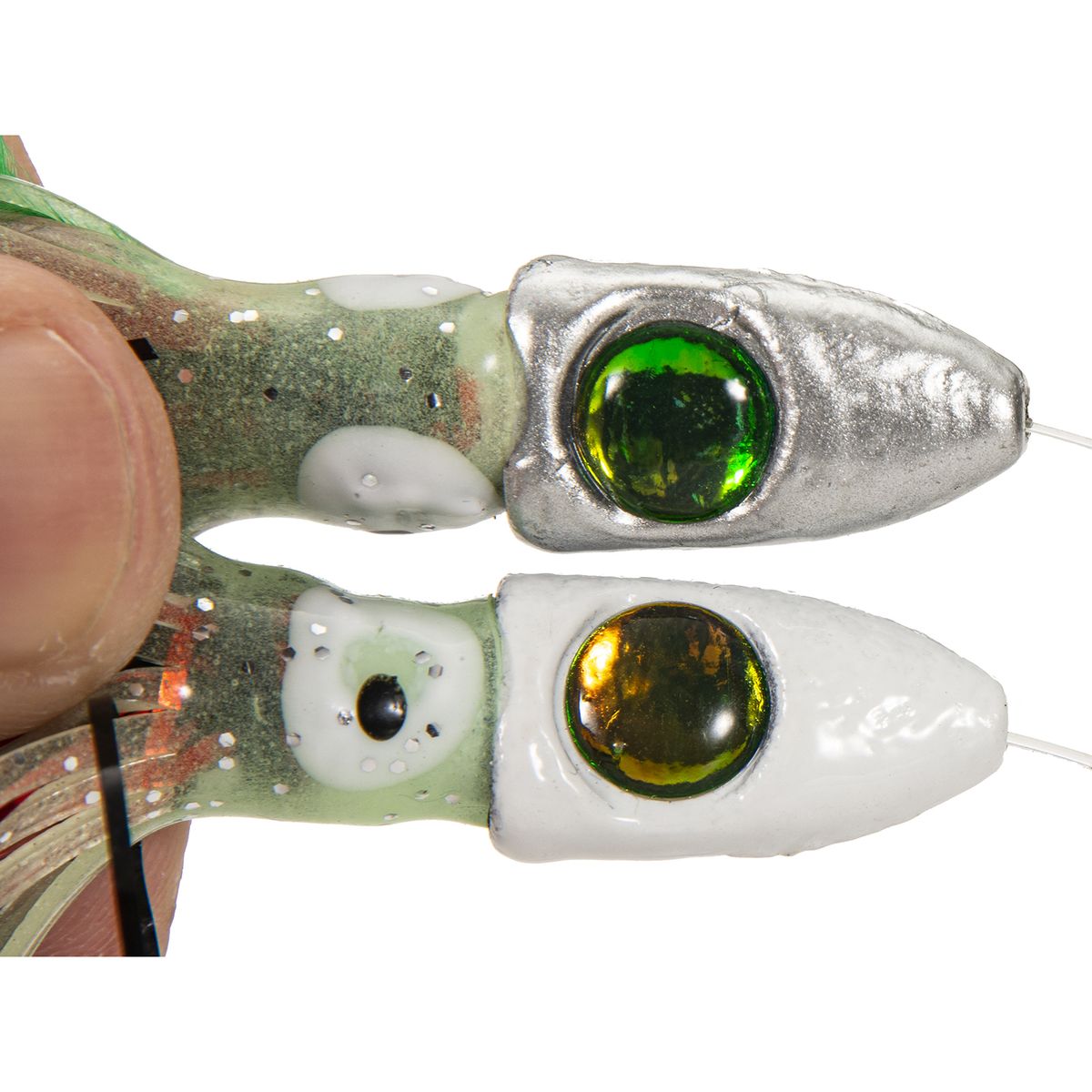 Lead weighted head with 3D lifelike eyes for high speed trolling.
