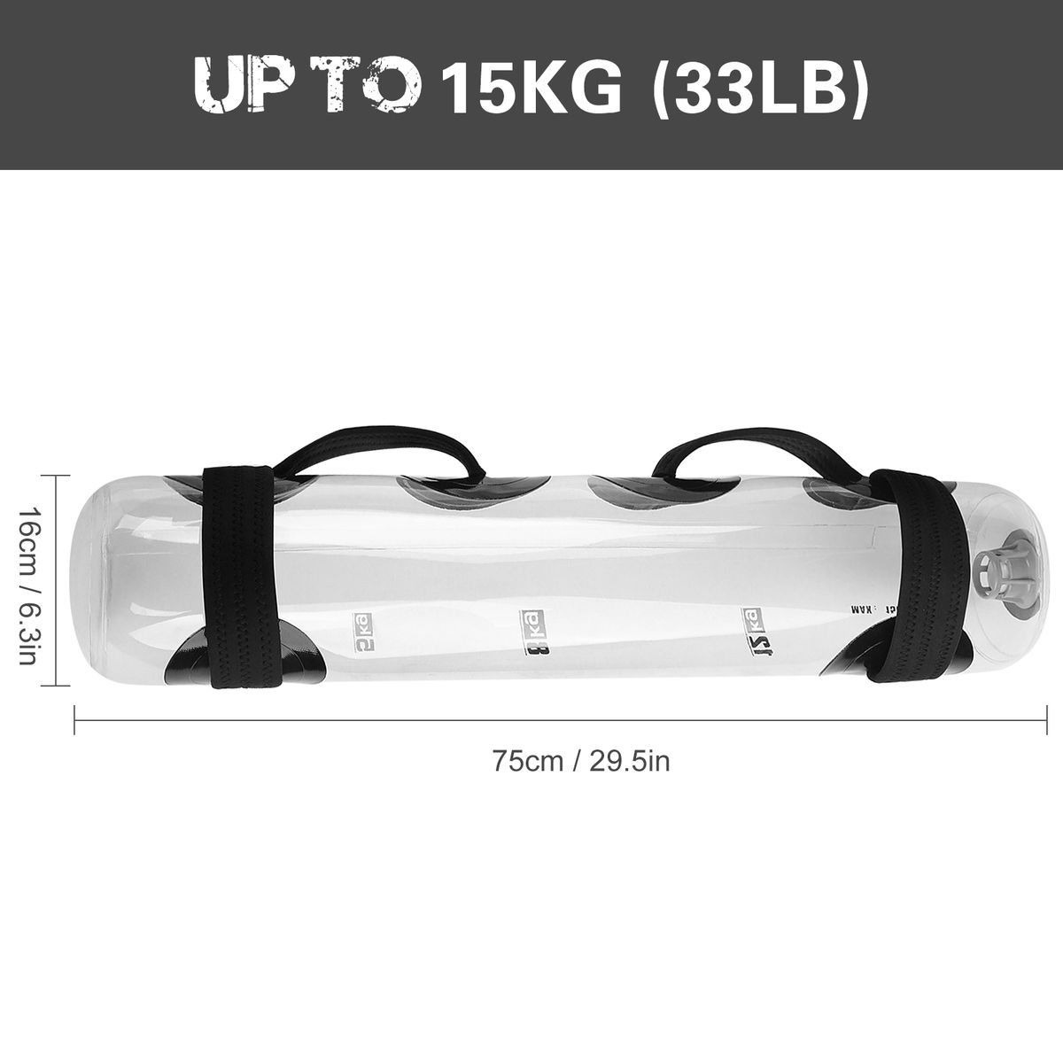 Fill water and air inside the bag to increase instability and train your muscles and balance.