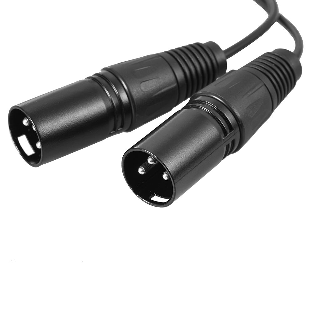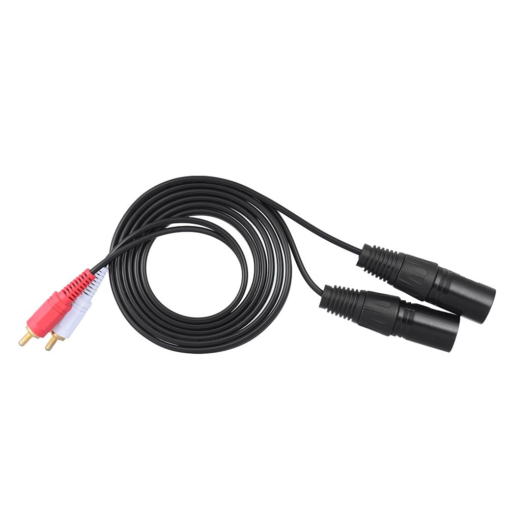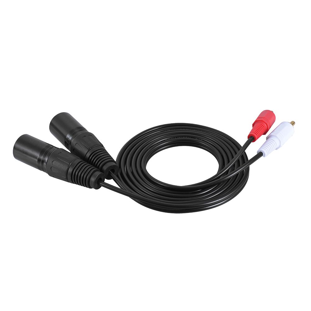 Two XLR male plugs to two RCA male plugs.