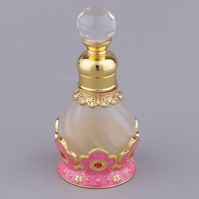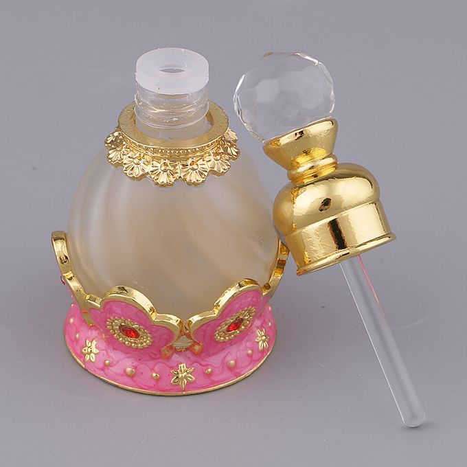 The top has a big crystal, smooth and easy to hold,use a metal rod to drop your favorite or essential oil on your clothes or body.(Cap top crystal color and style )