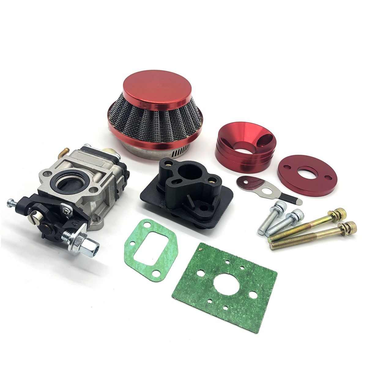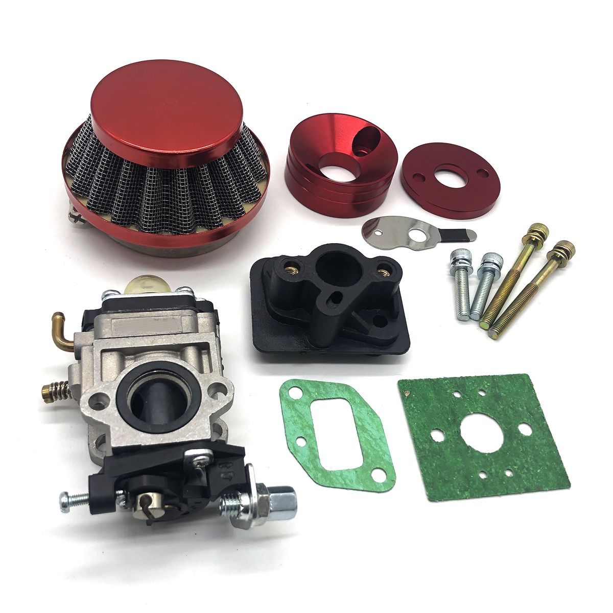 Including carburetor,hi-flow air filter,CNC intake adaptor with choke lever, gasket and bolts.