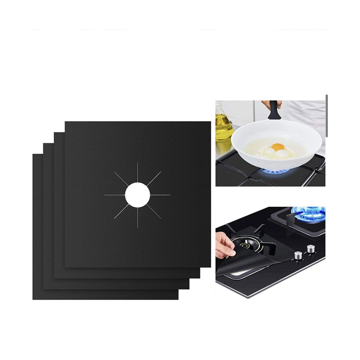 Please note: For gas ranges, place the protectors under the burner grills the flames. The hole of the protector must be trimmed with scissors to fit your gas range before use.