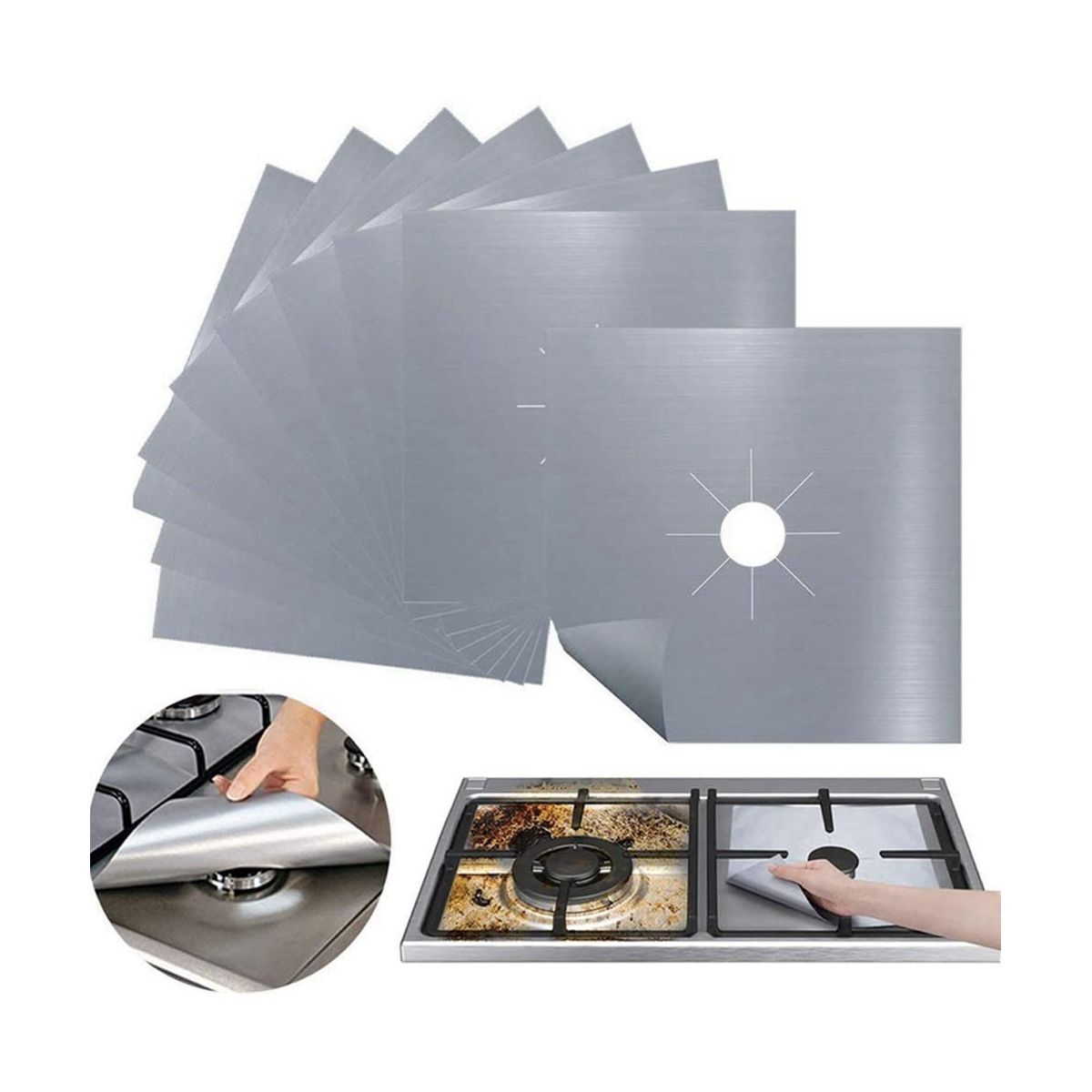 Please note: For gas ranges, p the protectors under the burner grills below the flames. The hole of the protector must be trimmed with scissors to fit your gas range before use.