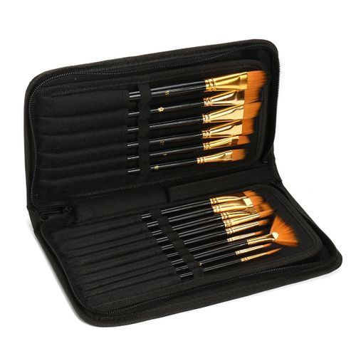 15 Professional Art Brush Set Nylon Water Oil Artist Paint Brushes