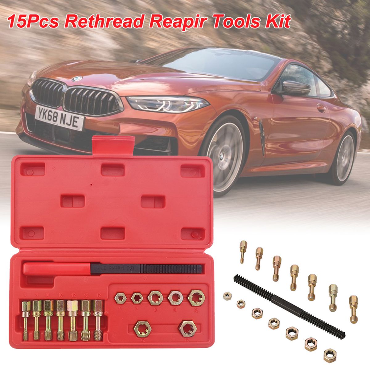 The 15pcs kit contains fourteen metric rethreader taps and dies, with one metric thread file for restoring external threads.