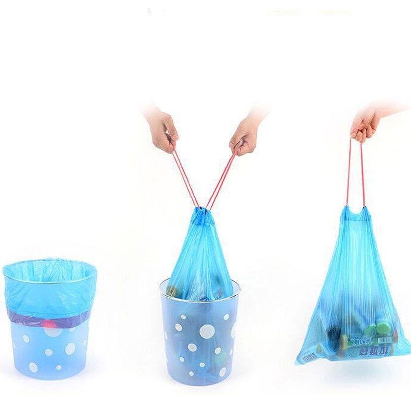 Description Product category: drawstring garbage bag Product color: Product features: It is used to store kitchen garbage and household garbage, automatically closes the mouth without dirtying hands, and is convenient to use. The thicker version is more resistant to stretching, has strong bearing capacity and is not easy to penetrate. Applicable scenarios: kitchen, dining room, bedroom, office, etc. Material: PE Size: 45*50cm Quantity: 15 pcs/roll The package includes: 1 roll of garbage bag