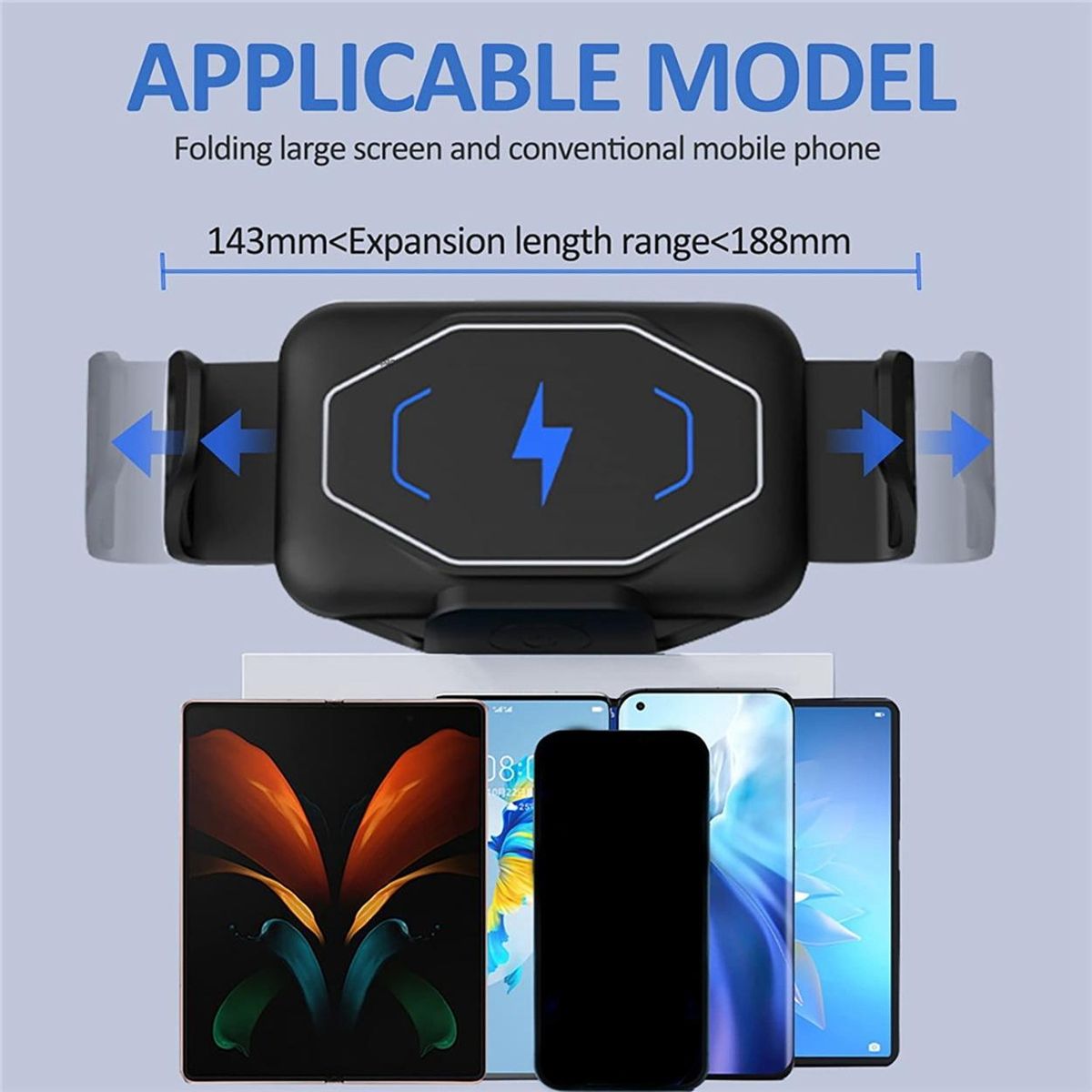 NOTED: Suitable for mobile phone length (Horizontal): 110mm-175mm smart wireless charging mobile phone is placed horizontally for wireless charging. It is not suitable for the mobile phone to be placed vertically for wireless charging.