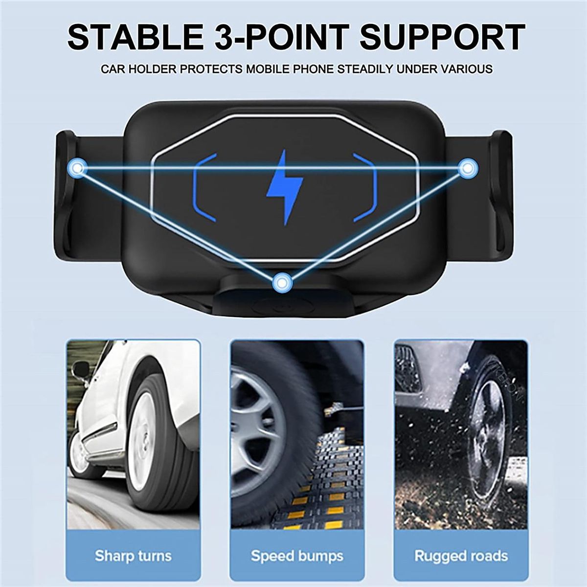 Qi standard and FOD production, Safety charing. 3 in 1 solution: attaches to car window, dashboard or air vent with included accessories.