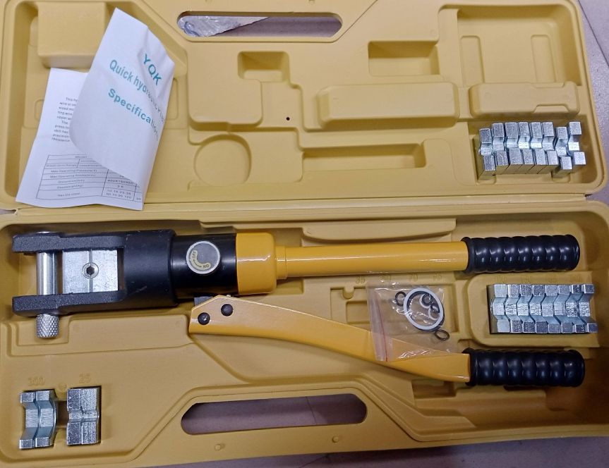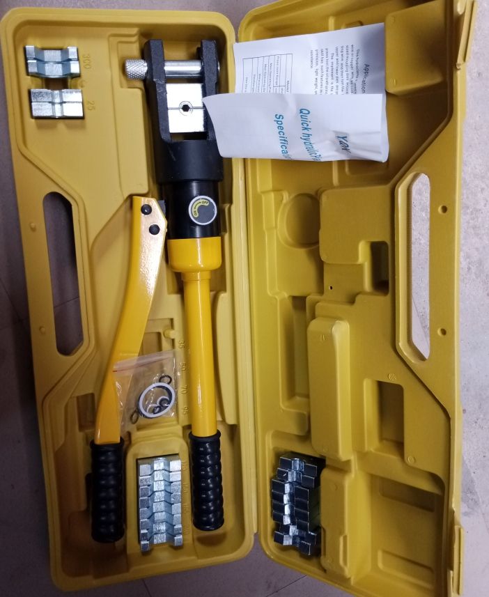 This hydraulic crimping plier is a very professional tool for attaching lugs to the ends of your heavy duty power cables and wires . The C-style head makes side entry easily and very simple to operate. Total weight is 6 lbs with useful carrying case, nearly 12 inch long and comes with 9 sets of hexagon dies. The crimping range is from 16 to 300 mm2 to suit for different size demands. Product Features: - Easy to use On-Off control for fast operation - Maximum 10 tons crimping power - 9 sets of different size hexagon dies with chrome finish - Comfortable ergonomic cushioned handle make it easy to hold and use (8") - Crimps AWG 12 to 2/0 size aluminum and copper wire - High quality plastic carrying case - Great for battery, welding cables, power wires and electrical cables et