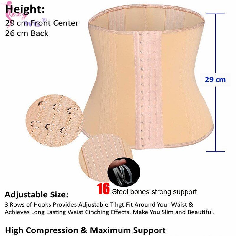 16 Spiral steel bones, 3 rows of hook and eyes82%Nylon+18%SpandeHook and Eye closurBeautiful fabric helps to eliminate muffin topFront hook-and-eye closure for easy on and offHelps minimize waistline and midriff for an hourgl shape