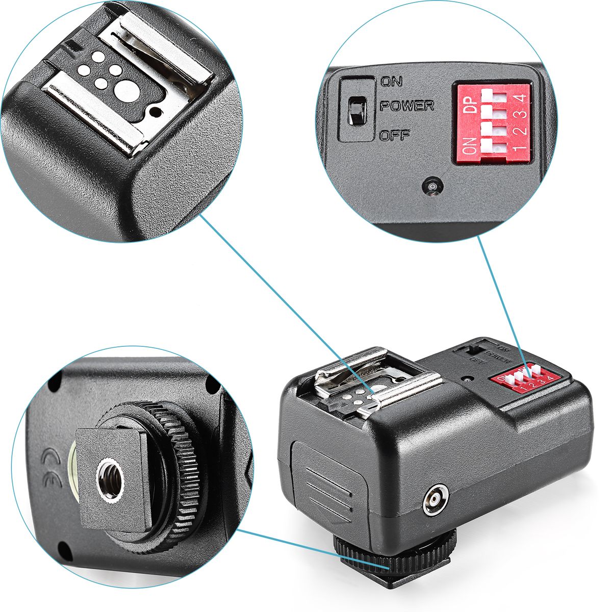 This flash trigger device is control discreteness for camera to trigger hot shoe flashgun synchronously. It's made up of two parts named signal transmitter and receiver. Work through wireless wireless remote signal controlling