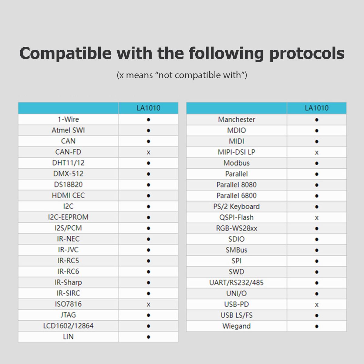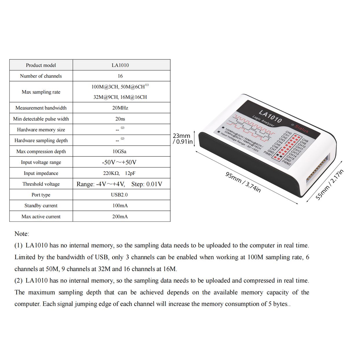 1 x Logic Analyzer with 20P Cable,1 x 9P Cable,1 x 2P Cable,20 x Connector,1 x USB 2.0 Cable (1.5m),1 x Software CD,1 x User Manual (English)