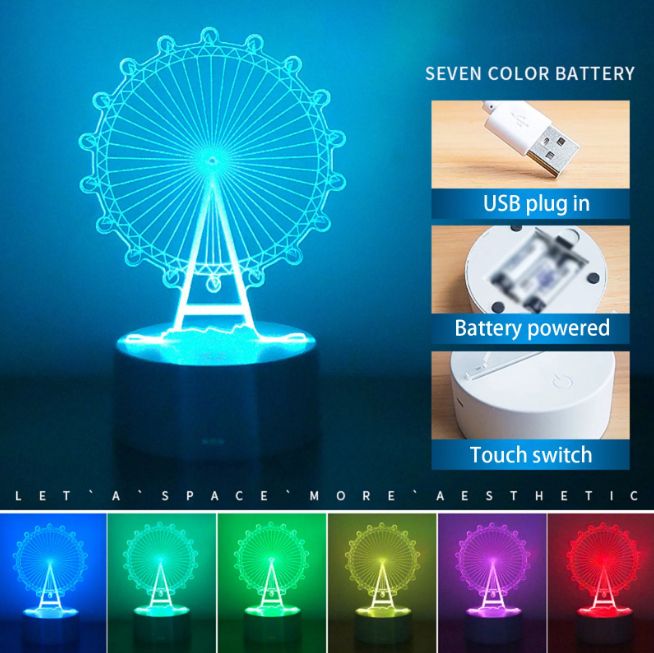 Buy 16 Colors Bedside Table Lamp Colorful WHEEL Led 3D Vision Night in Nigeria