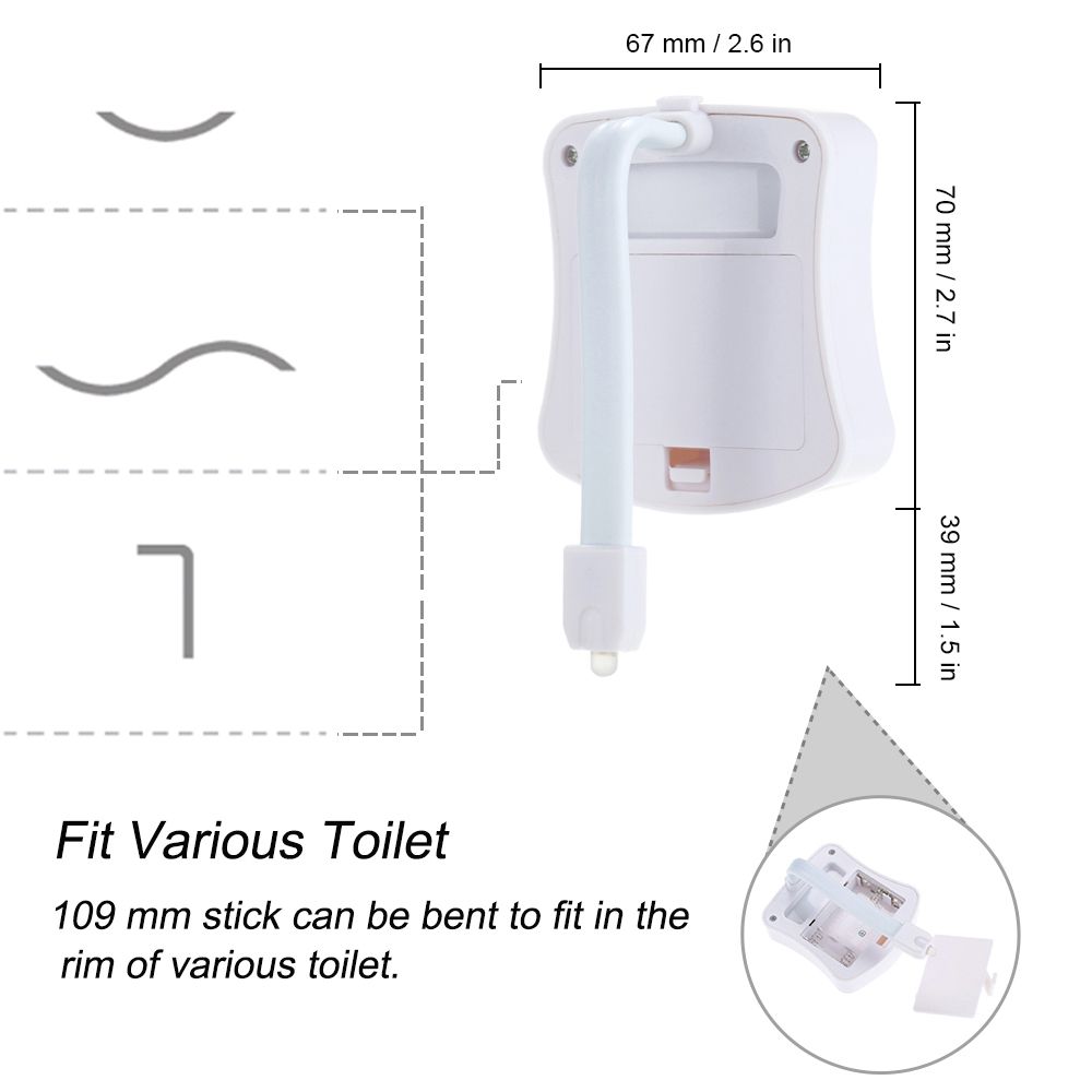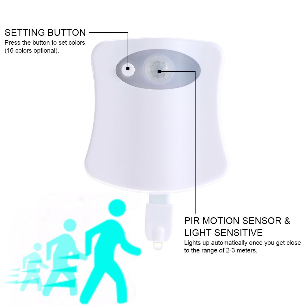 This is a motion-activated nightlight that is specially designed for the toilet in darkness, which means that it automatically illuminates toilet only in the darkness once you are close to the range about 2-3 meters of your toilet, no more missing your target or stumbling around the bathroom in the dark.