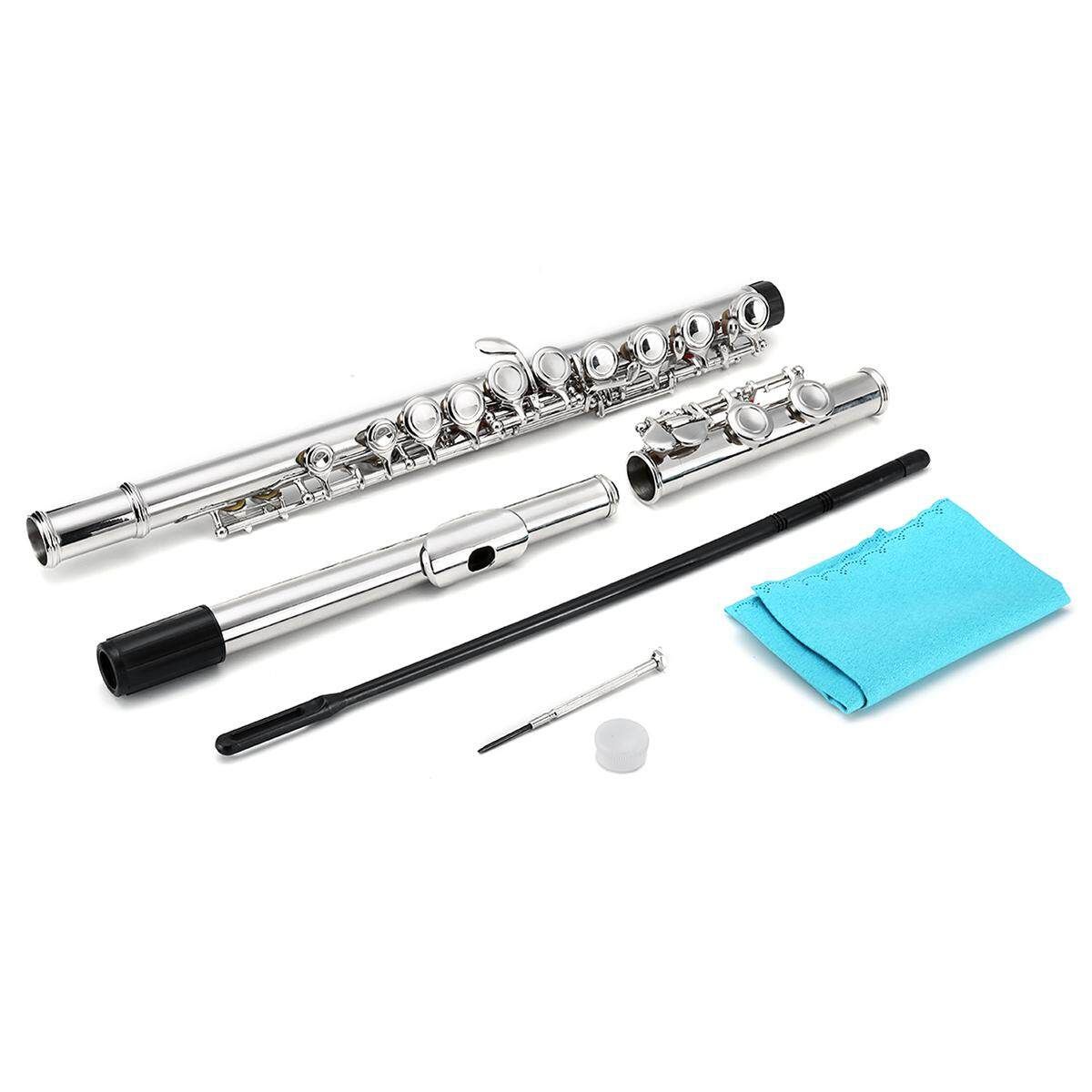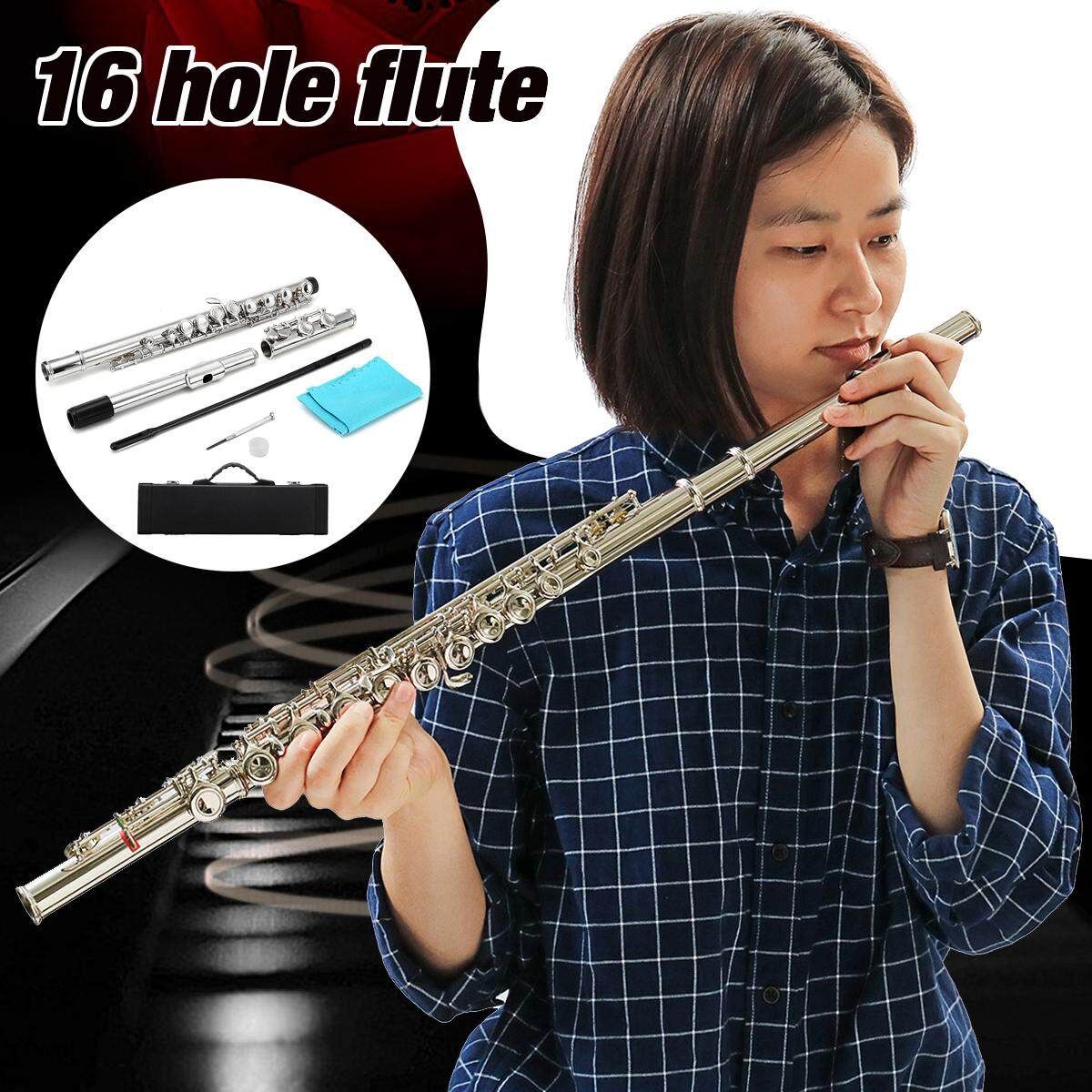 -Closed 16 hole flute with range to . Nickel/Silver plated head, body, foot and keys by
