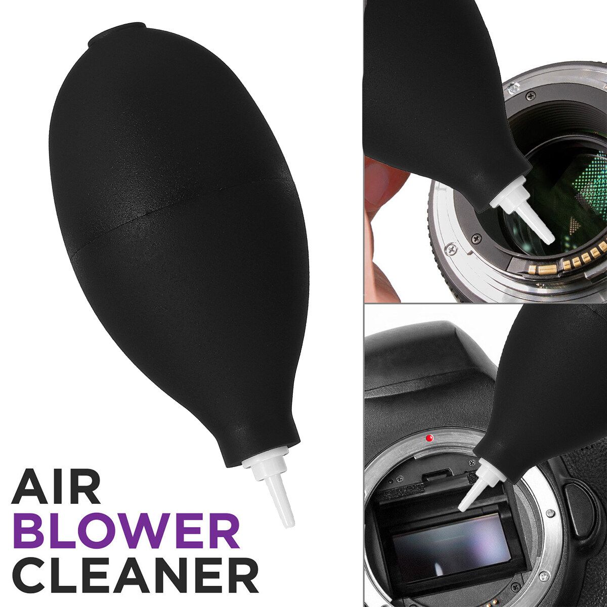 - Direct a powerful stream of air to blow away dirt and specks from , DSLR sensors and camera mirrors.
