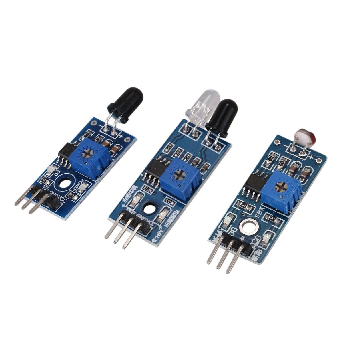 Those sensors will often being used in the beginner's project.It is included Sound and Obstacle avoidance sensor,Obstacle avoidance sensor,temperature and humidity sensor,ultrasonic,A path tracing module and infrared human body induction sensor.