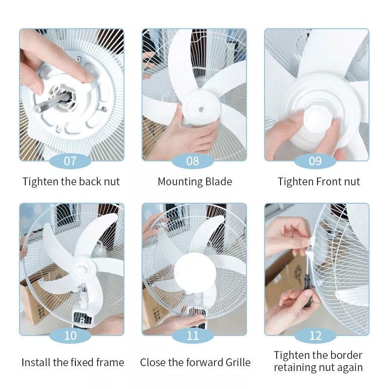 Pay attention1. Please read the instructions carefully before use for the first time2. Ensure that the voltage displayed on the appliance is consistent with the mains voltage.3. When the led turns dark, please charge the product.4. Even if the appliance is out of power, charge it at least once every 3 months for 10 hours5. When the fan is not in use, set the fan switch to OFF6. The appropriate working environment humidity is 0C-40℃7. Avoid using in water or damp environments.