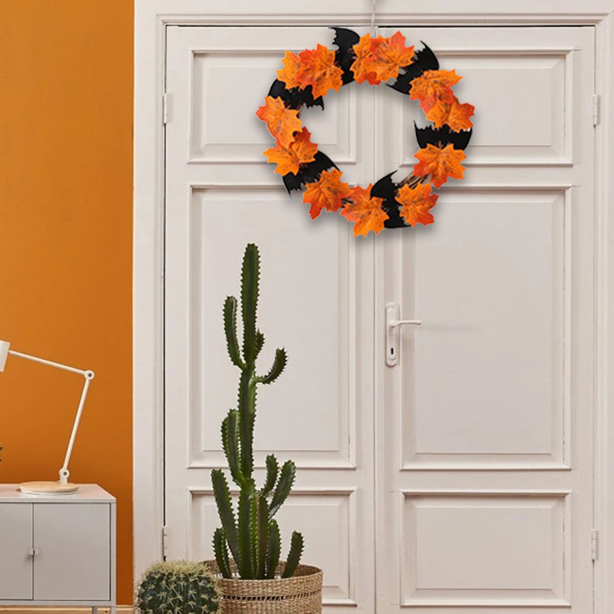 5. The beautiful Halloween wreath more matches the theme of Christmas, dress up the Halloween party nicely.