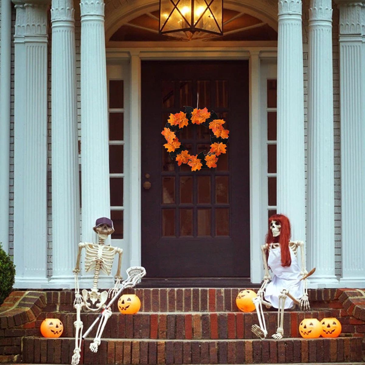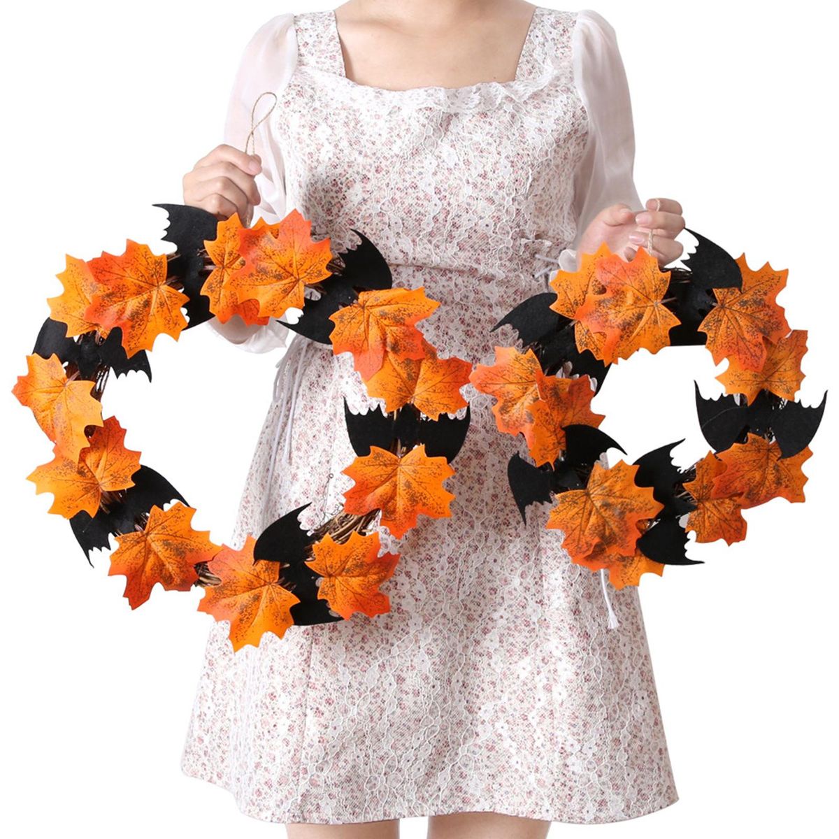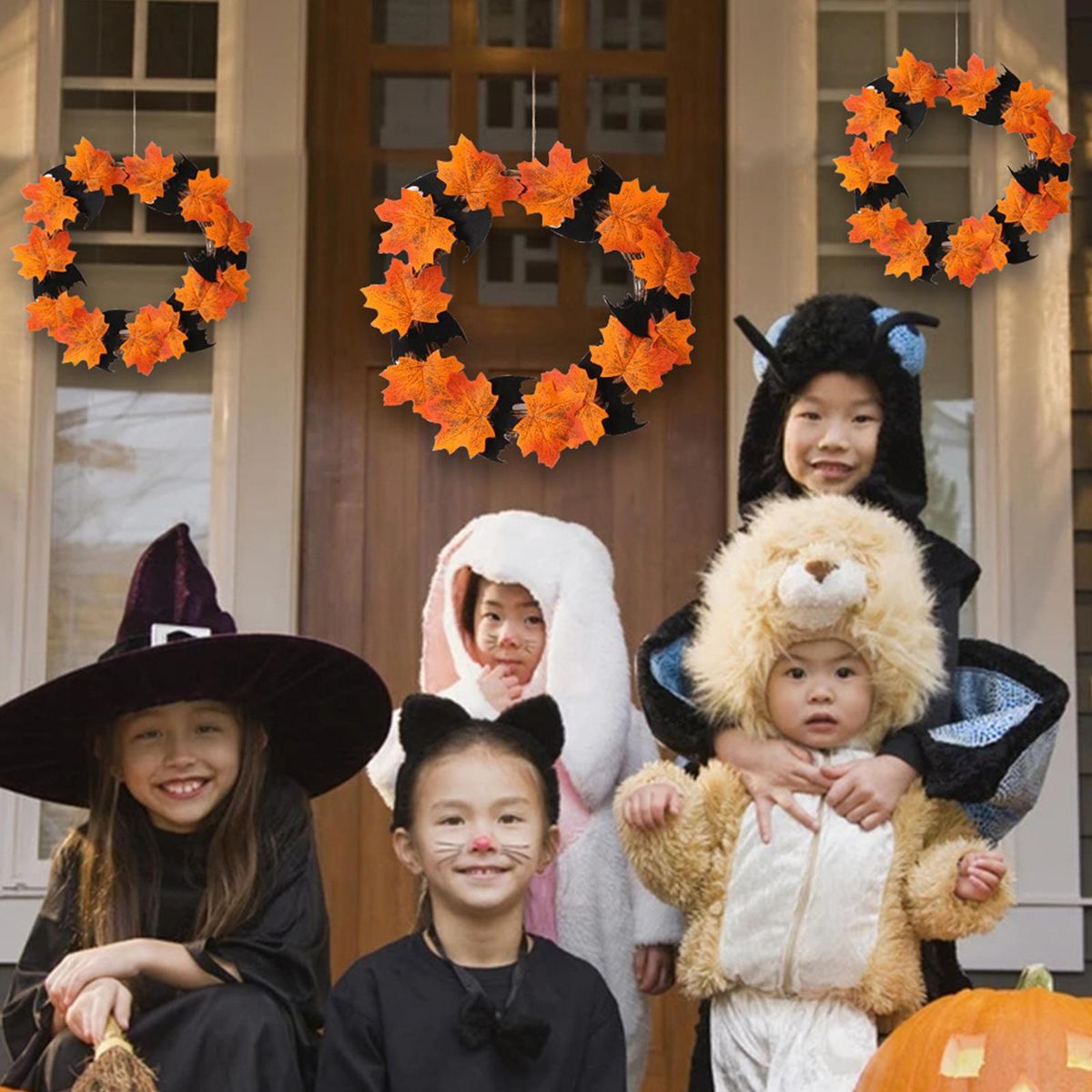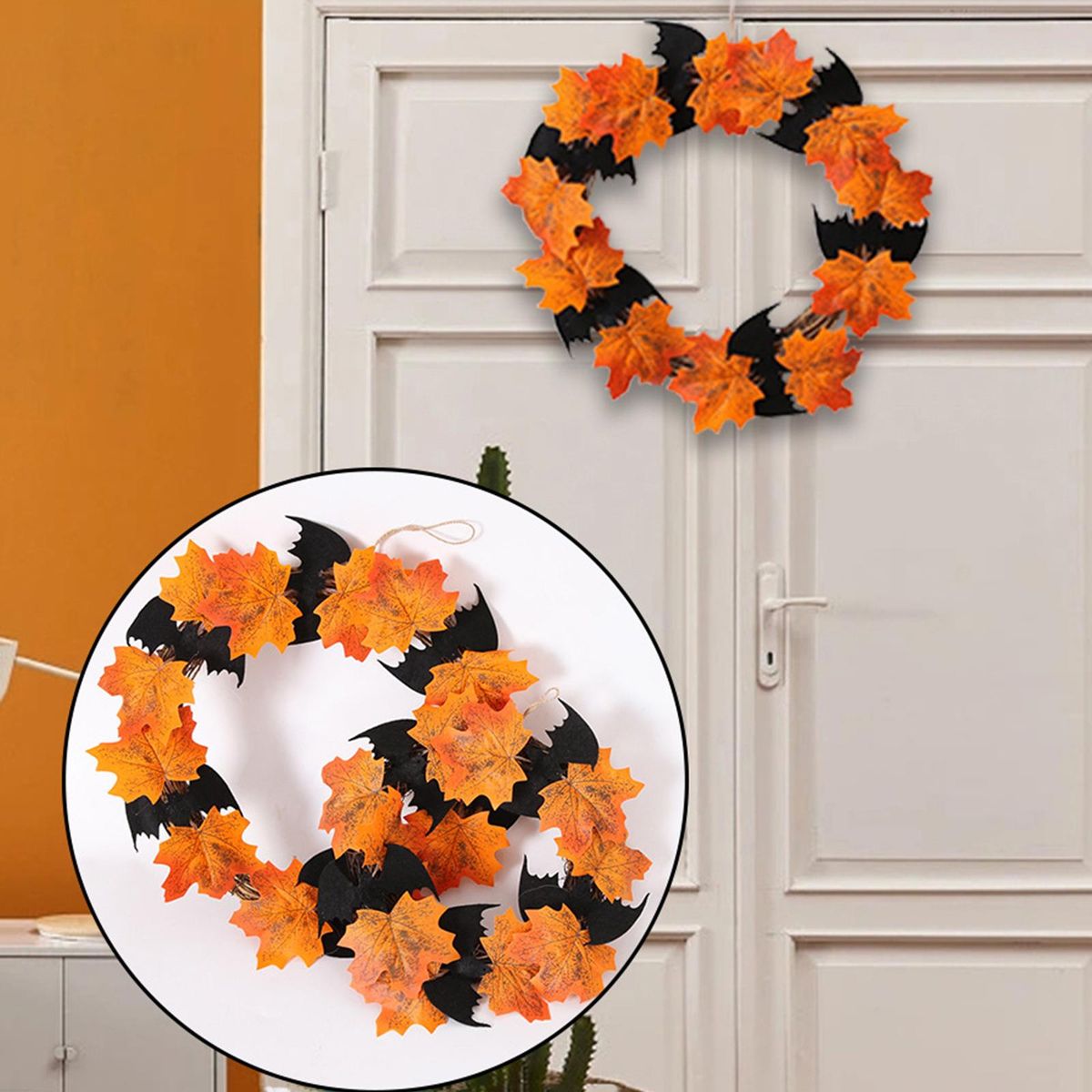 Buy 16 Inch Halloween Front Door Wreath Hanging Garland Artificial Maple Leaf Bat Wreath for Wall Halloween Holiday Party Haunted House Decoration in Nigeria