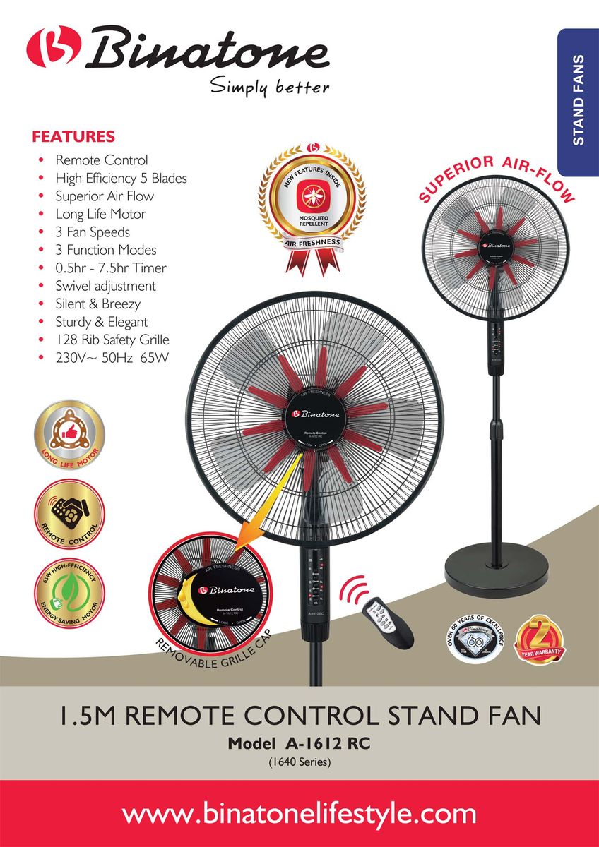 Buy the Binatone Stand Fan - A-1612RC on rehmie at the best price in Nigeria.