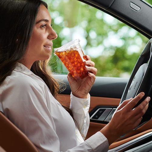 - 16 oz plastic cups- convenient size cups for on the go or at your home and office. Great for drinks like iced coffee, slush, smoothies, boba tea, bubble tea, soda, juice, ice latte, milkshakes, Frappuccino or any cold Lid is slightly raised to make space for whip or toppings.