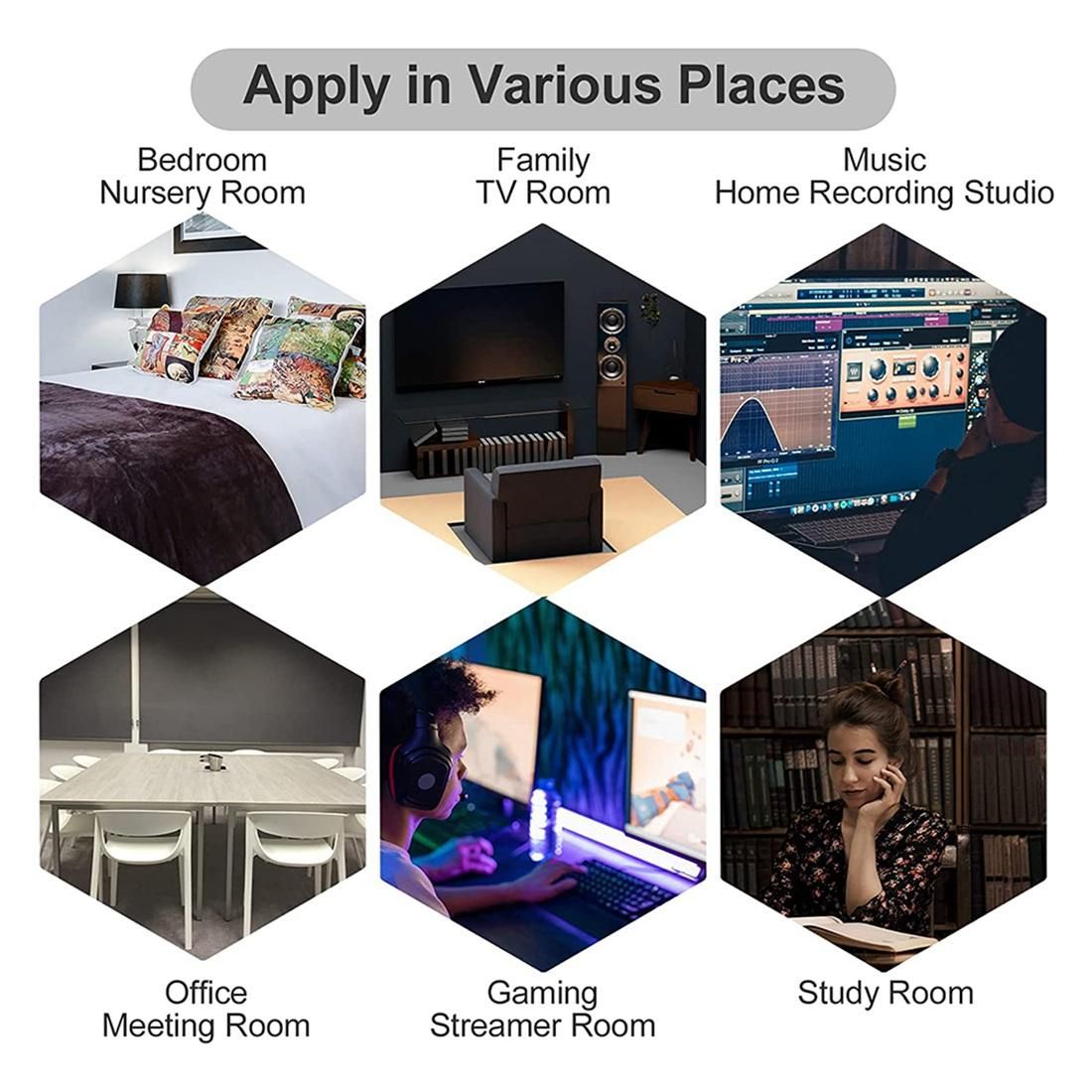 Versatile - The uses of acoustic panels sound absorbing are very diverse. They help you create professional studios, rehearsal rooms, concert halls, home theaters, offices, vocal rooms, and more. Provide you with a private space for quiet enjoyment.
