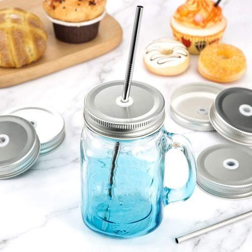 Material: regular mouth lids are made of tinplate material which is reusable and durable also have good tightness, and straws are made of 18/8 stainless steel, no metal aftertaste