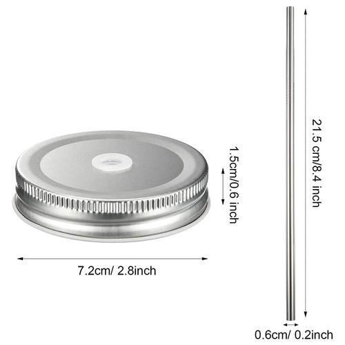 Appropriate size: regular mouth lids are approximately 2.8 inches in length, lid hole size: 10 mm/ 0.4 inches; Silicone grommet internal diameter: 8 mm/ 0.3 inches; The straw measures 21.5 x 0.6 cm/ 8.4 x 0.2 inches (L x W)