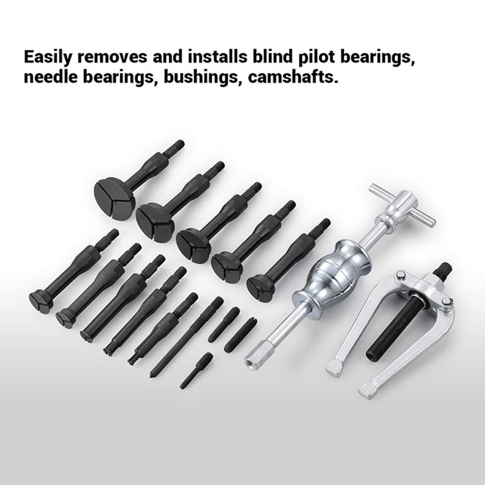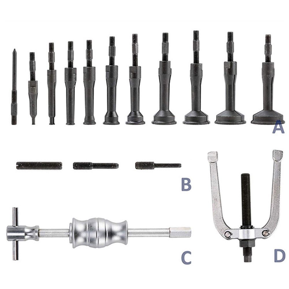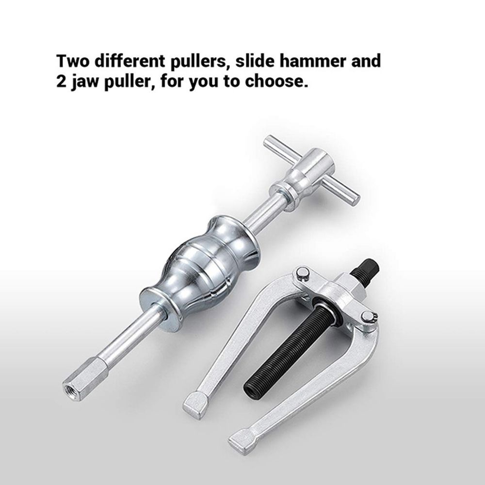 5 pcs, 9 pcs or 16 pcs blind hole bearing puller kit is suitable for installing and removing different-sized inner bearings of the car.
