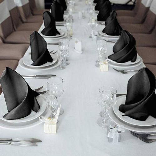 The square satin napkin suitable for decoration on the table of 12-16 diners; rich and elegant colors are perfect for your dinner decoration.perfect embellishment to your home decoration, wedding, restaurant or event.