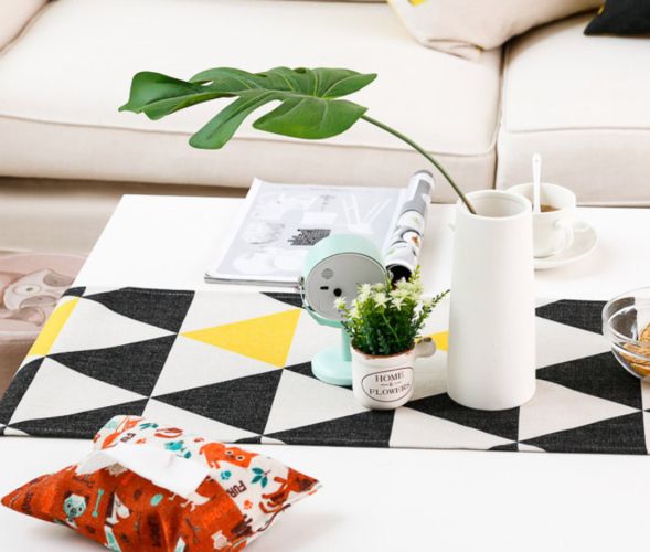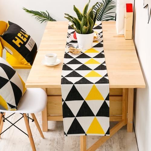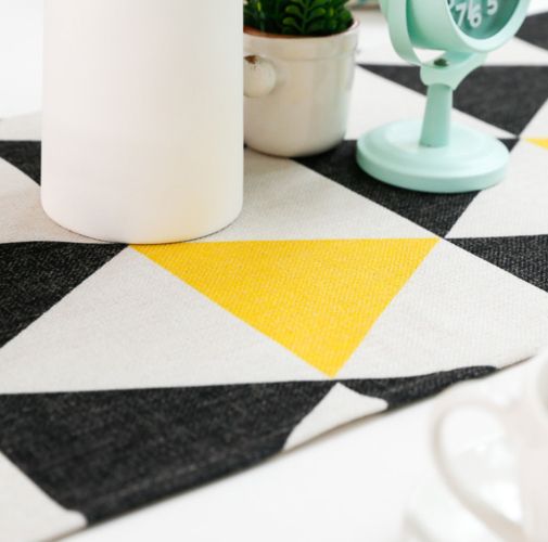 1PC Modern Yellow Black Gemeotric Triangle Linen Cotton Blend Table Runner Home Party Table Cover Fabric Comfort Home Decoration