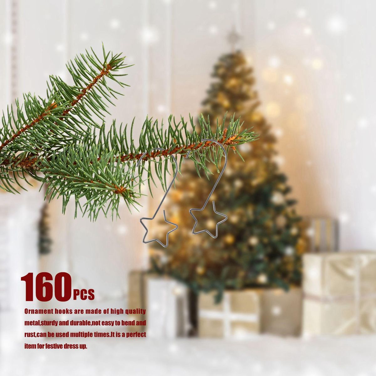 Star hooks - The hook is designed in a star shape, which is a unique design, making the tree more attractive and eye-catching with the extra ornaments, also your ornaments will not fall.