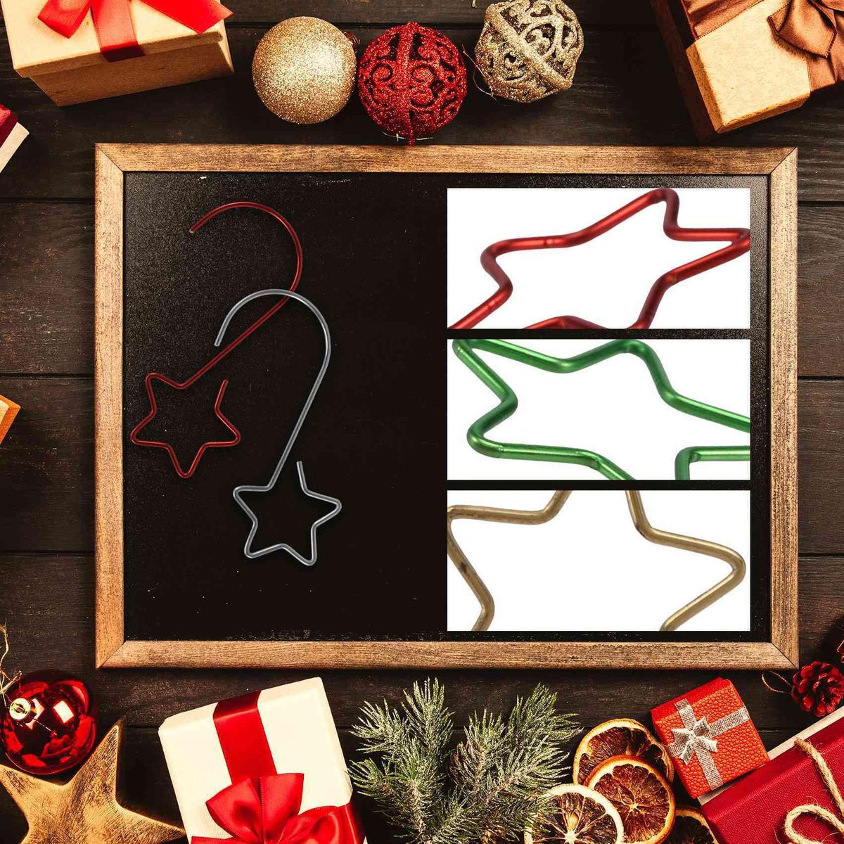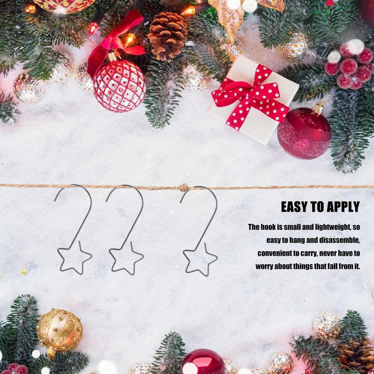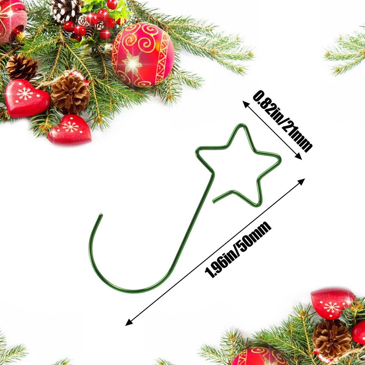 Wide applications - The hooks are perfect for , and any ornaments such as Christmas balls, ribbons, and flowers, which greatly enrich the Christmas mood in your house. Colour:Gold+silver+green+red