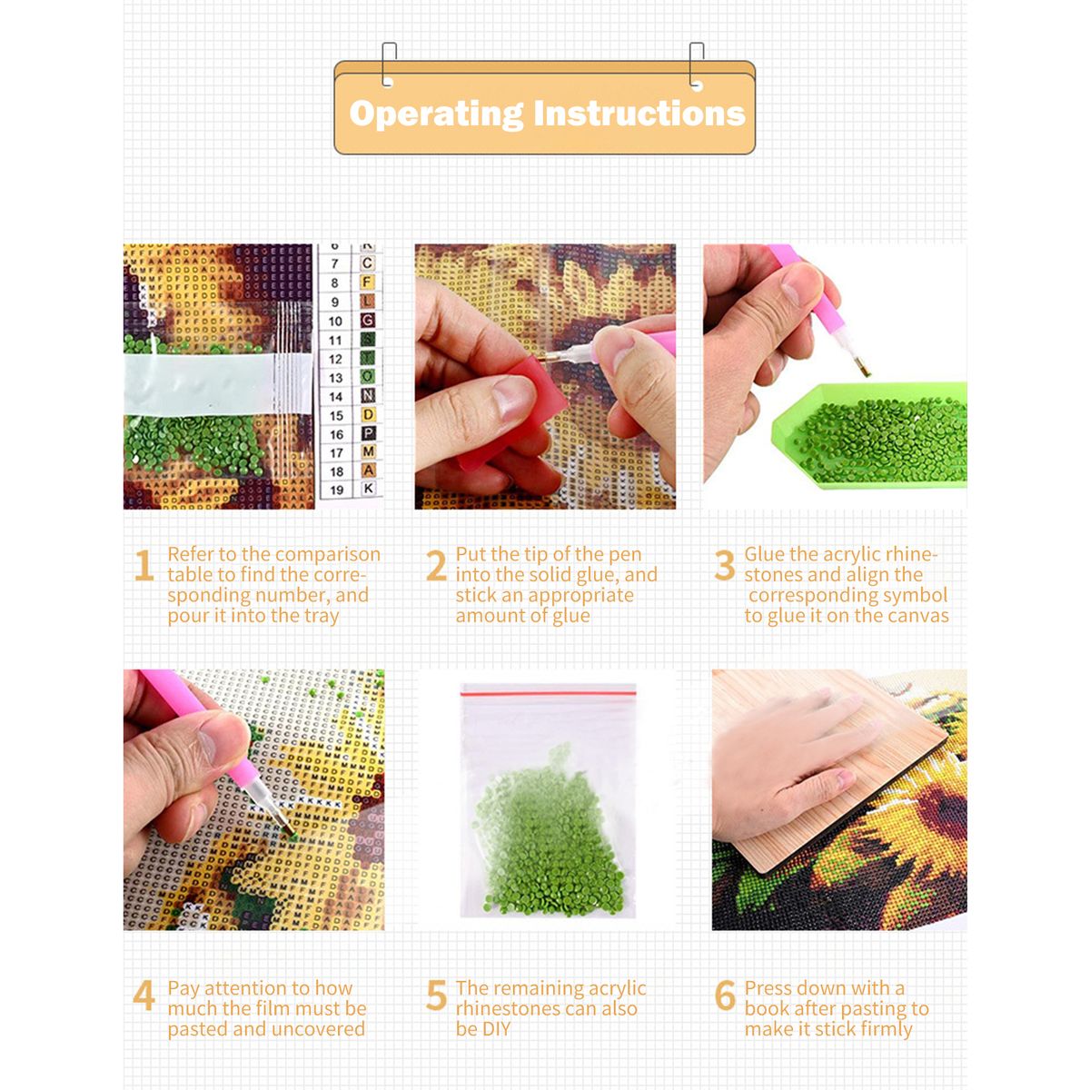 4. The acrylic rhinestones are packed in individual bags and the color table is printed on the canvas, easy to identify.