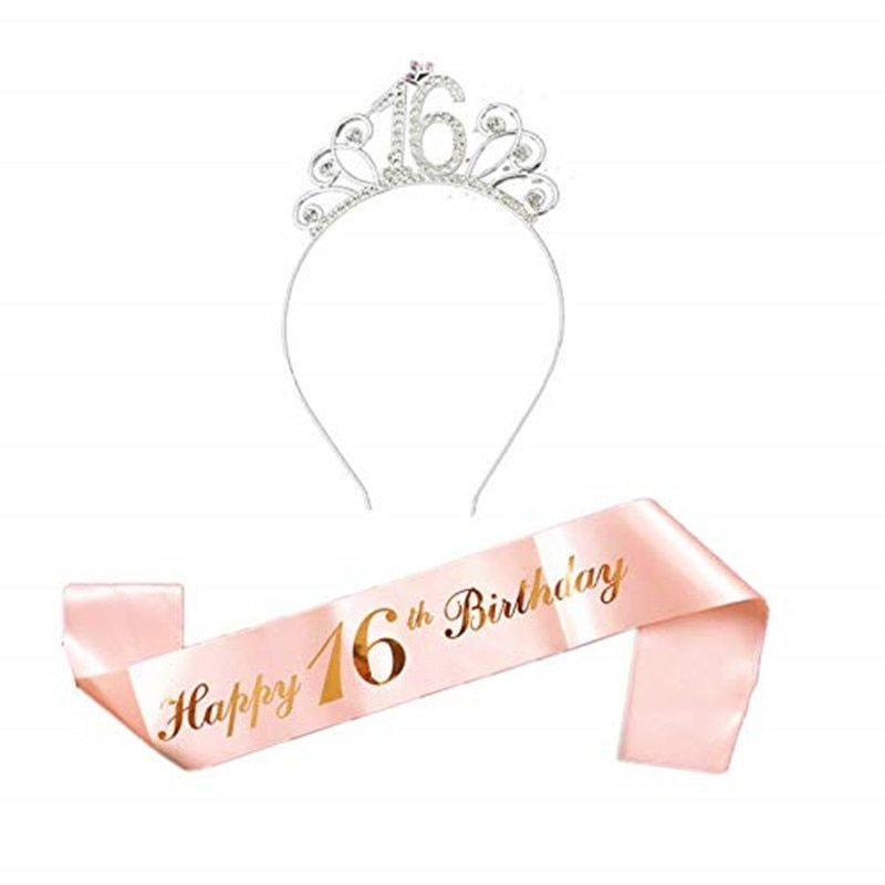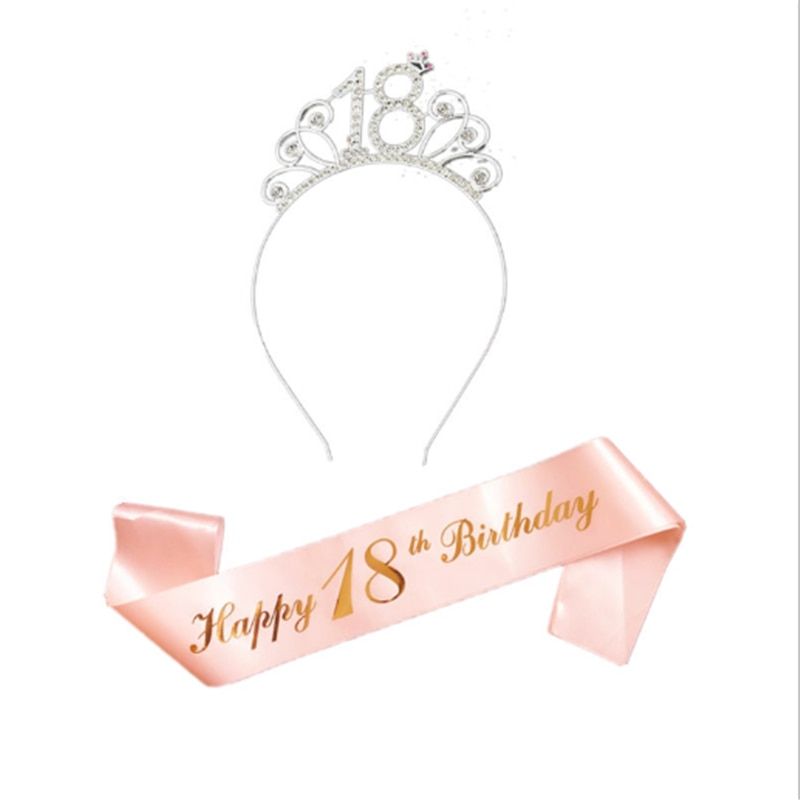 1X 16/18/20/30/40/50 Happy Birthday Party Shoulder Strap Crown Set Rose Gold Letters Party Decoration 18 Years Old Shower Gift