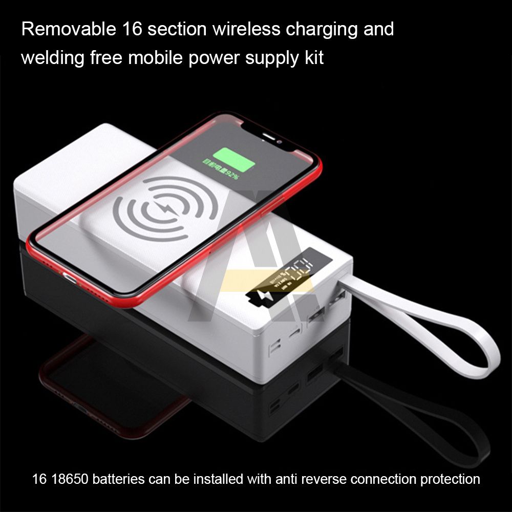 1X 16*18650 Battery Storage Box PD QC3.0 USB 10W Fast Wireless Charging Power Welding Free Bank Case 18650 Battery Holder Box