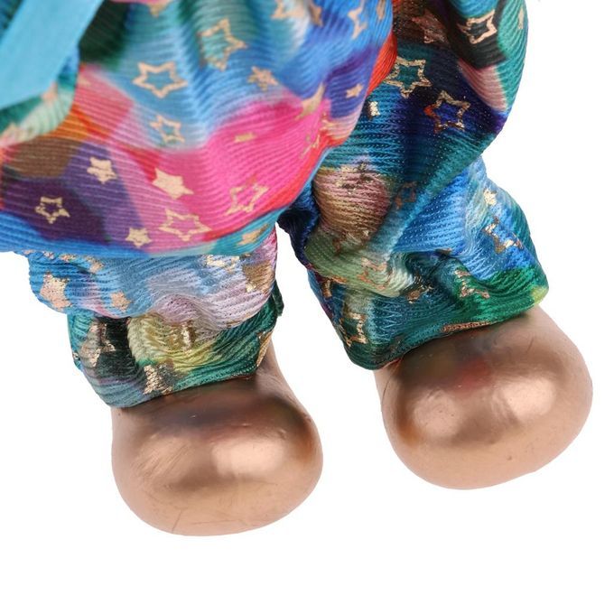 The head, hand and foot are ceramic, and clothes is golden silk brocade. Limbs are , can also have many postures