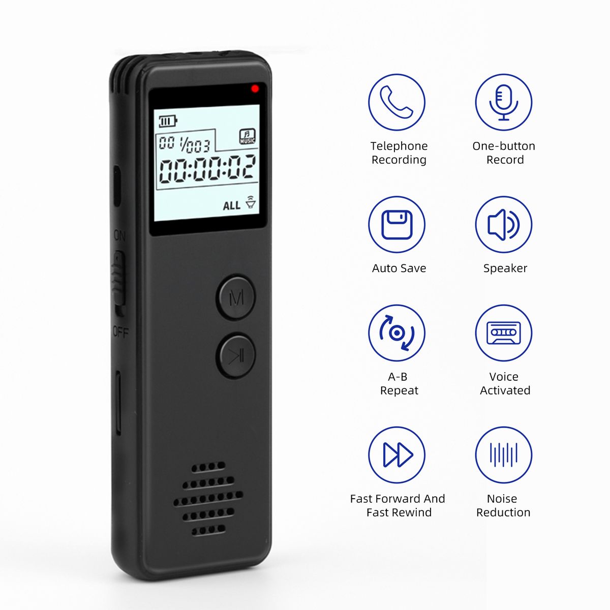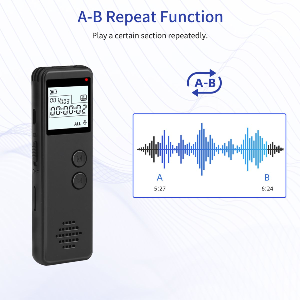 Voice Control/Line-in Function - Comes with voice control function, Turn it on and will auto recording when there have sound. Support line with other equipment such as telephone to recording. Adjust the volume, forward and back, and A-B repeat operation functions you can operate.