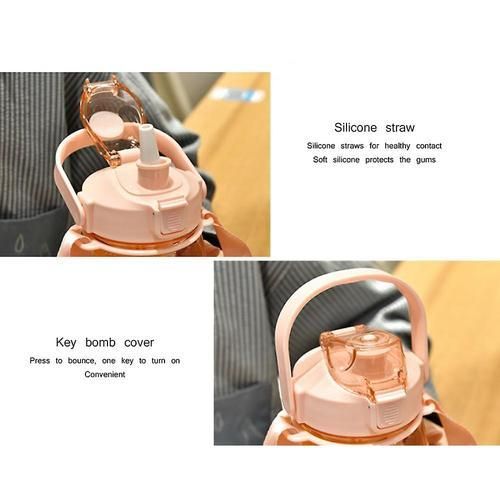 One lid with two ways to drink The straw which equipped in large water bottle , you can enjoy spill-proof sipping with straw or fast water flow without straw. Spring-loaded cap effectively prevent dust from entering to bottle, keep your items clean.