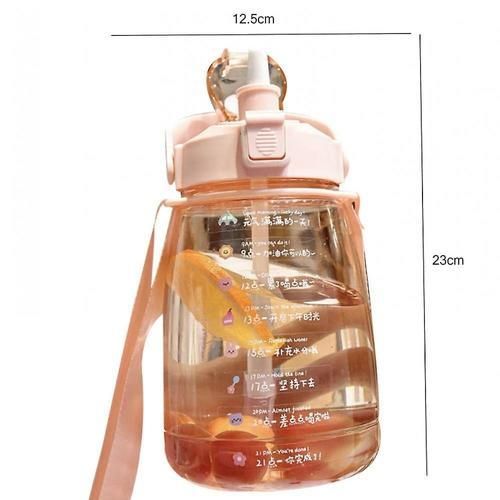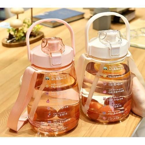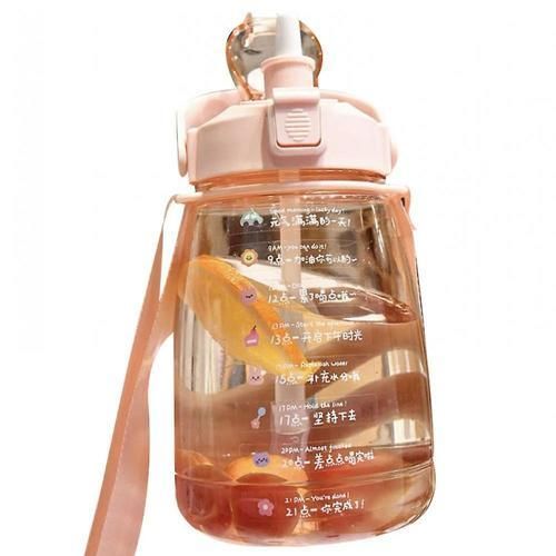 1.6l Large Water Bottle With Strap, Children's Cute Plastic Water Bottle(Pink)
