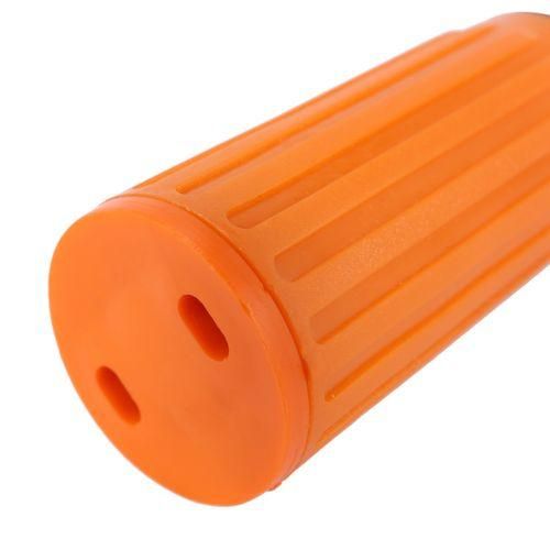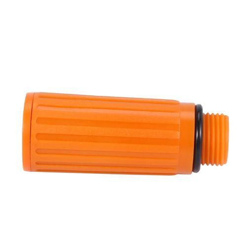 This air compressor oil plug features plastic material in orange color, male threaded, nonskid handle.