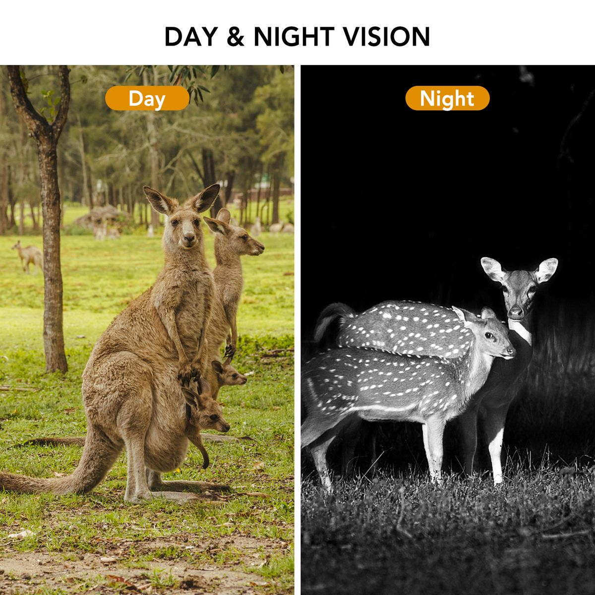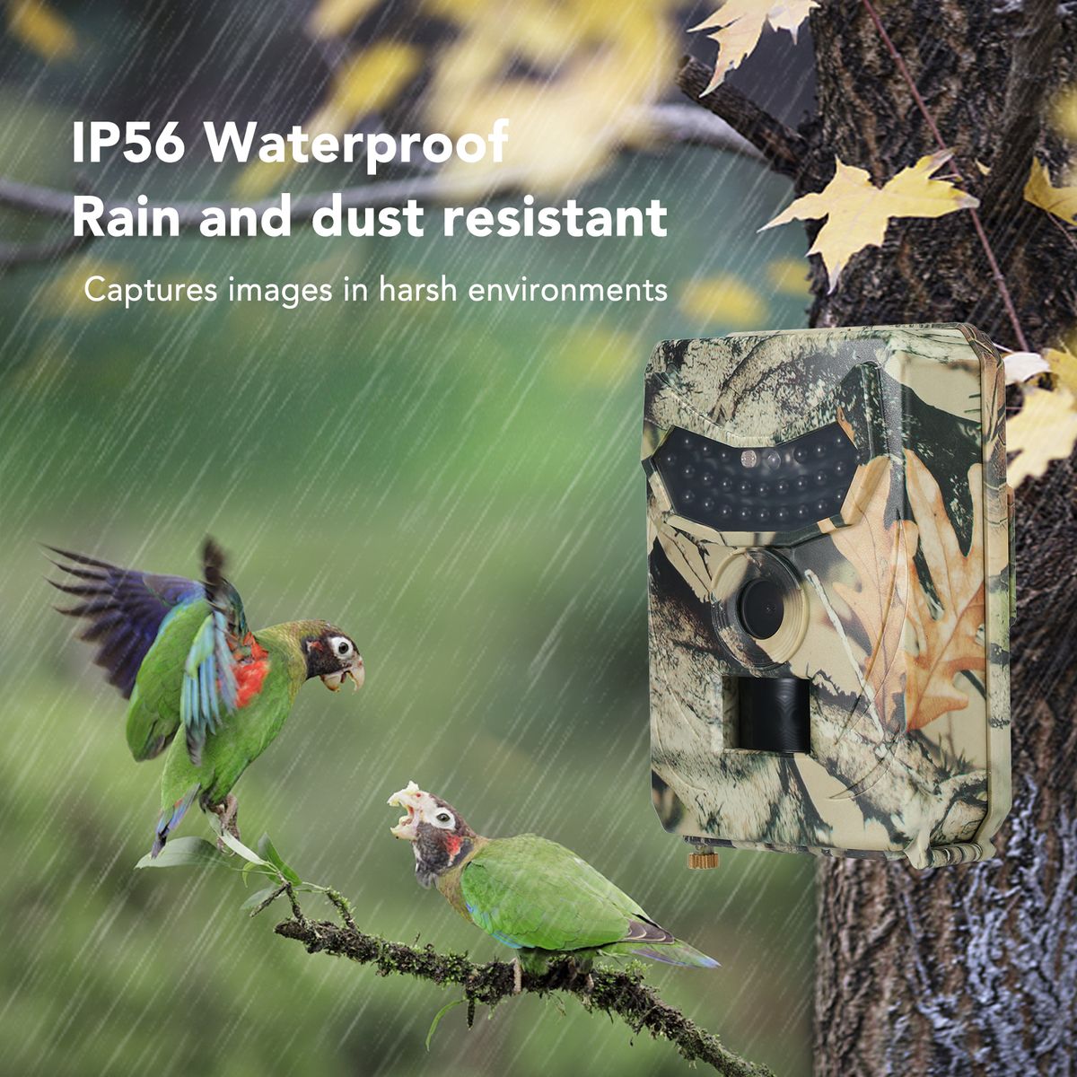 Long Night Vision Range: Built-in 26pcs 940nm infrared black LEDs provide up to 49 feet night time vision, which makes this camera a stealthy unit that does not intrude into the natural habitat, widely used in hunting, wildlife observation, home security, surveillance and scouting game.
