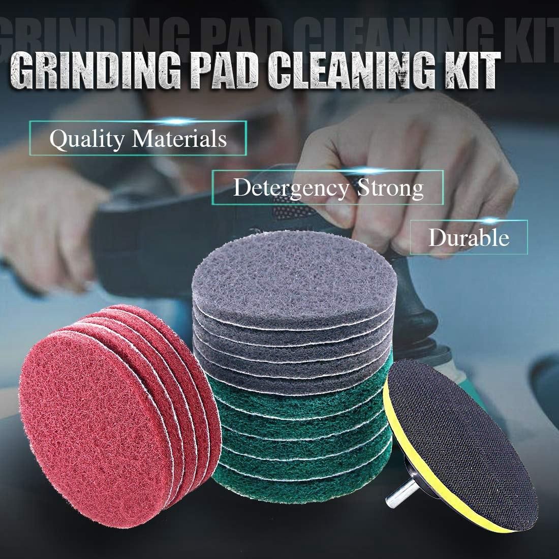 3, With 3 Kinds Grit Pads - We provide three different Grit Pads to meet your different cleaning needs; green Pads (8698#) are harder and thicker than red Pad (7447#)) and brown Pad (7447C#). Brown Pads are second only to green ones in stiffness, and red Pads are soft enough to clean glass shower doors without any scratches.