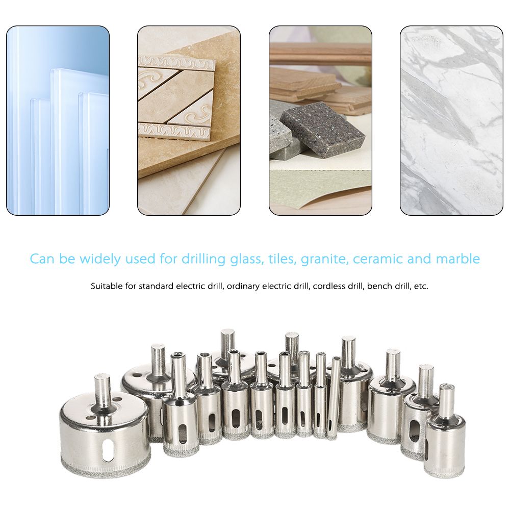 Useful drilling tools for easy and quick drilling hole of glass, tiles, granite, ceramic and marble. Made of fine quality diamond, wear resistance and with fine durability, perfect for drilling holes.