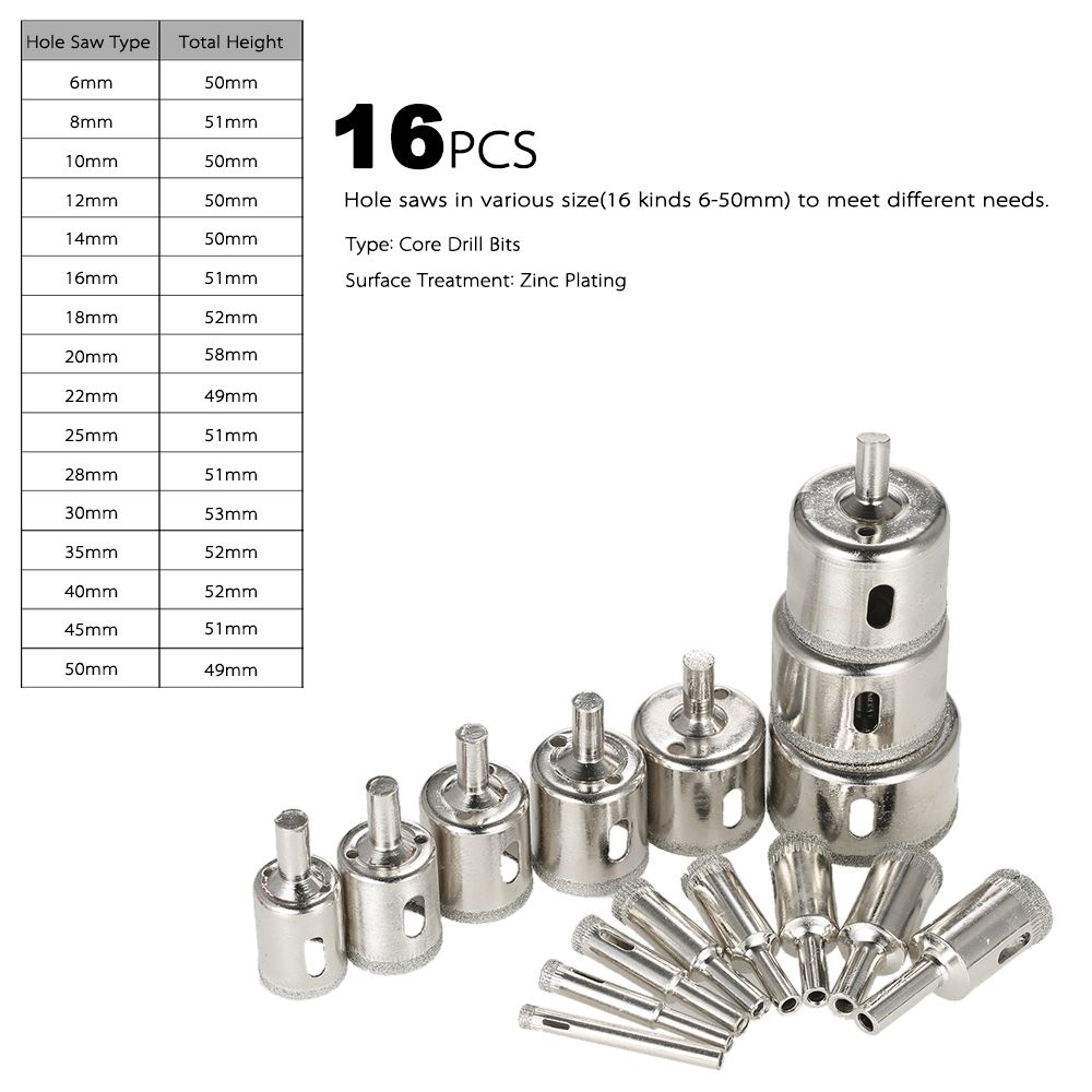 Hole Saw Type: 6mm, 8mm, 10mm, 12mm, 14mm, 16mm, 18mm, 20mm, 22mm, 25mm, 28mm, 30mm, 35mm, 40mm, 45mm, 50mm