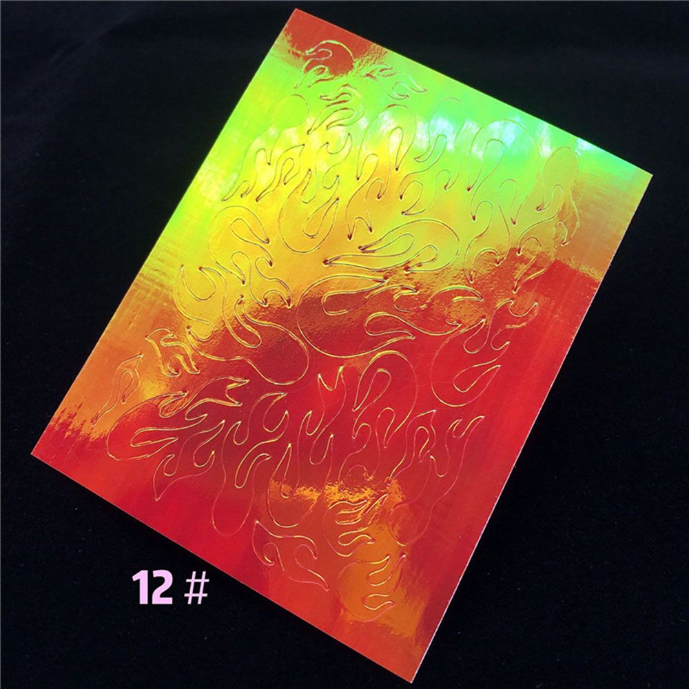 The color of newest nail stickers changes with light depending on viewing angle or background.