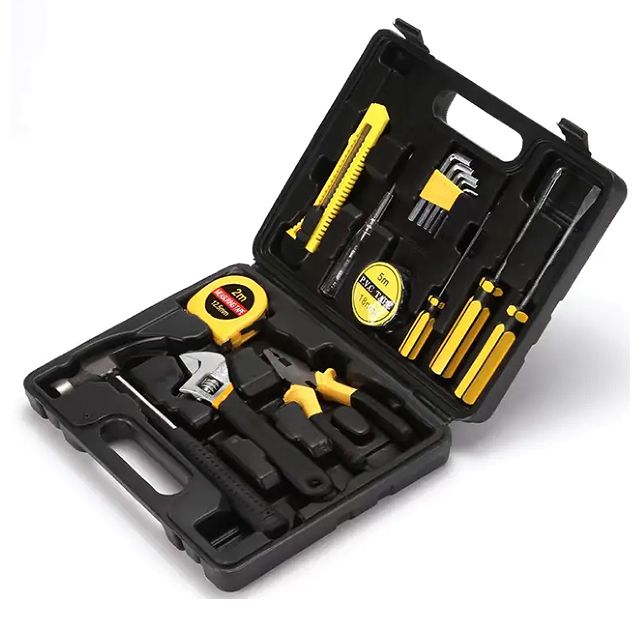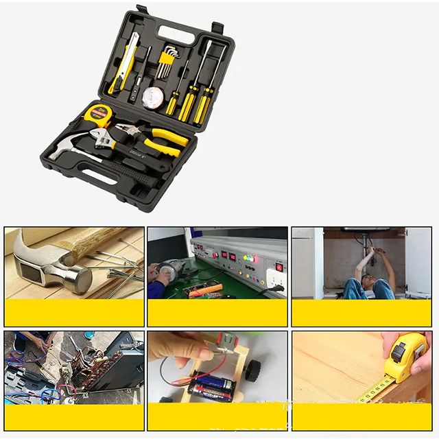 * HIGH QUALITY&STANDARDS: Tools are manufactured from high-grade steel alloy, chrome plated to resist corrosion, with non-slip comfort grip handles for extra torque, and will last a lifetime under normal use.* COMPLETE VARIETIES: Contains tools needed for most small repairs and basic DIY projects around the house. Perfect for Handyman's, repairmen, construction workers, mechanics, body shops etc. also a great tool set to have at home, garage and the workshop.* INCLUDES: Complete assortment of professional-grade 1pc 7"Side cutting pliers,1pc 8"Adjustable wrench,1pc Utilityknife,2pcs Screwdrivers6*100(±),5pcs Hex key(2-6mm),1pc PVC insulation tape,1pc Digital electric tester,1pc Tape measure(2M),1pc Claw hammer(8oz),1pc Screwdriver3*75(+),1pc Blow case.* EASY TO CARRY&STORAGE: Housed in a handy blow-molded case for easy tool storage and portability. Its sturdy interior and organizer keeps tools in place.*Our Tools aims to provide high quality, competitively priced, Hand Tools and Power Tools constructed of the finest quality components and designed for the home repair enthusiast.Tools are constructed of high quality chrome vanadium steel, and heat treated and chrome plated where appropriate. Each tool is tested against industry standards for hardness, torque, finish and usability and guarantee to last for home use.