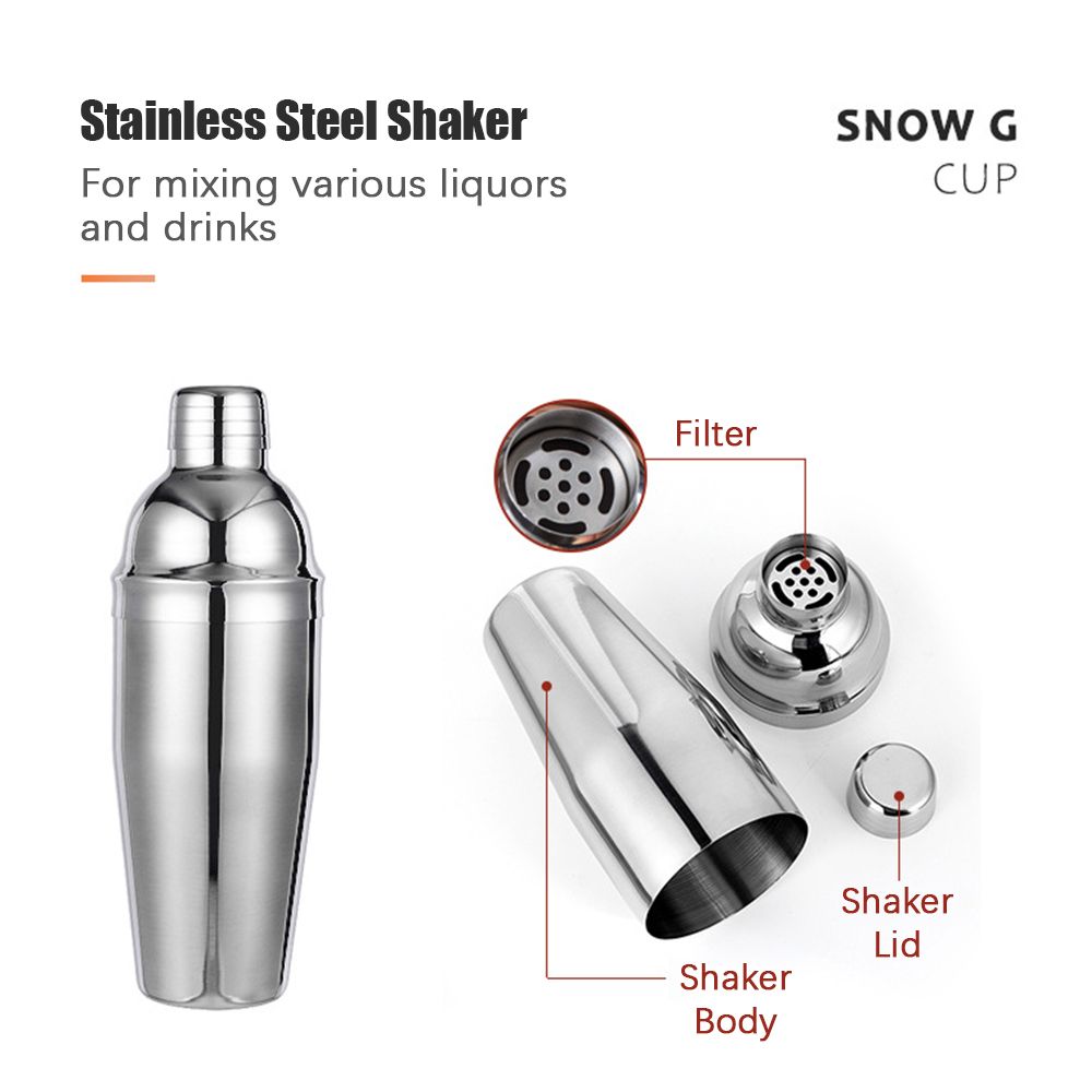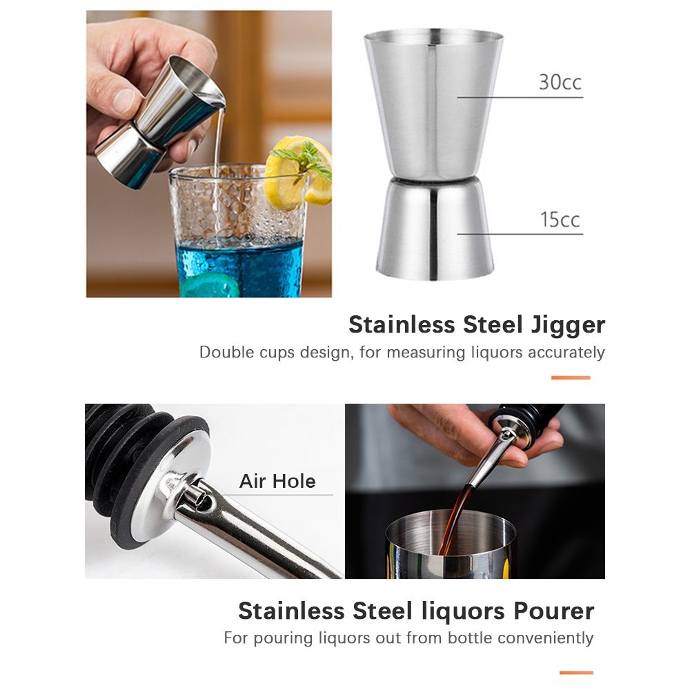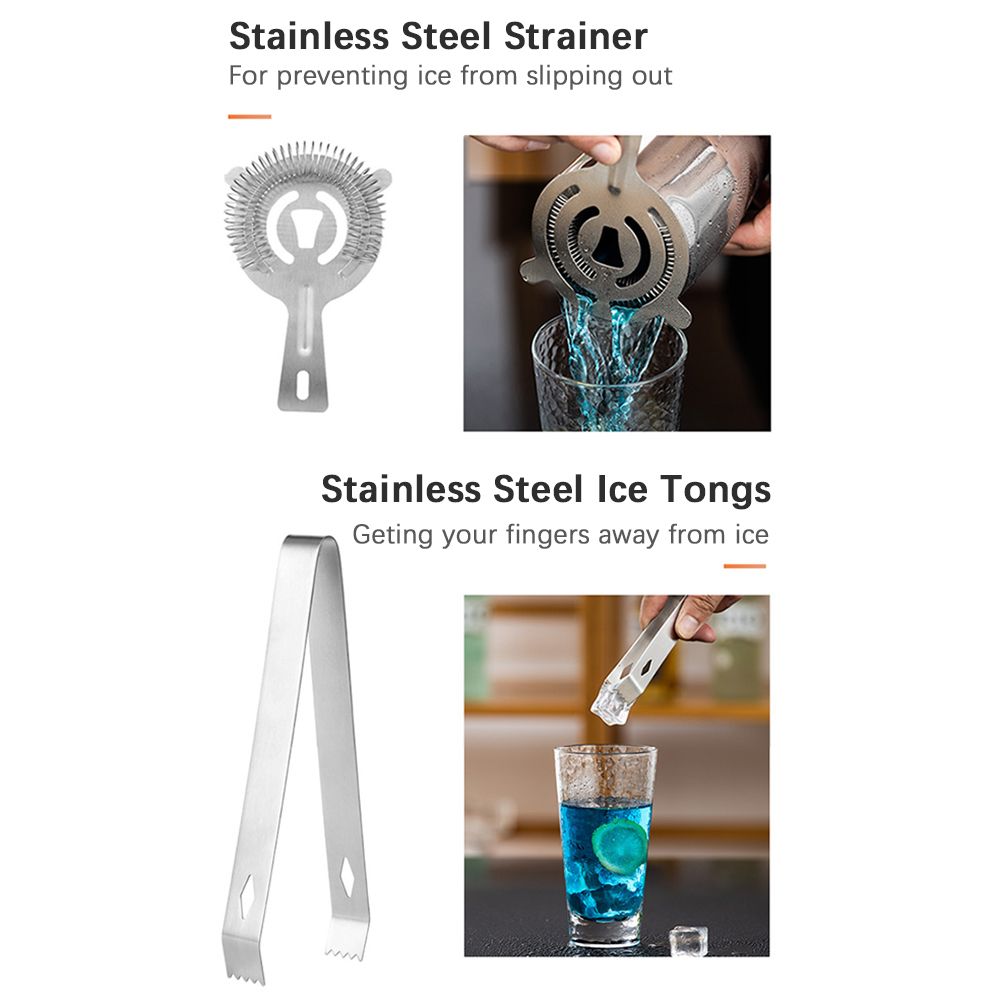 【Durable Stainless Steel Material】Mainly made of high-quality 304 stainless steel material and adopting polishing process, this cocktail shaker set not only looks fashionable and desirable, but has been professionally designed to last a lifetime.